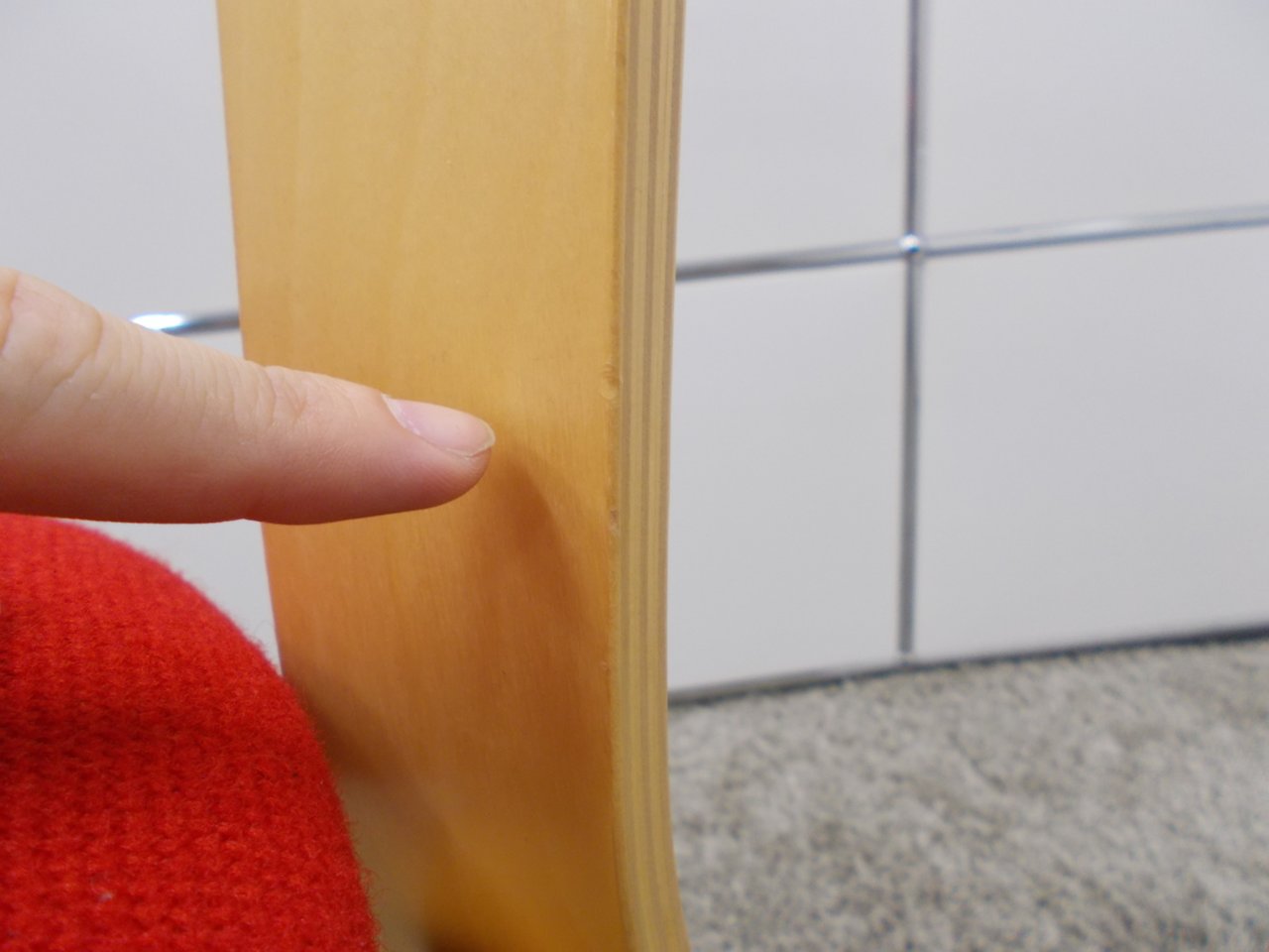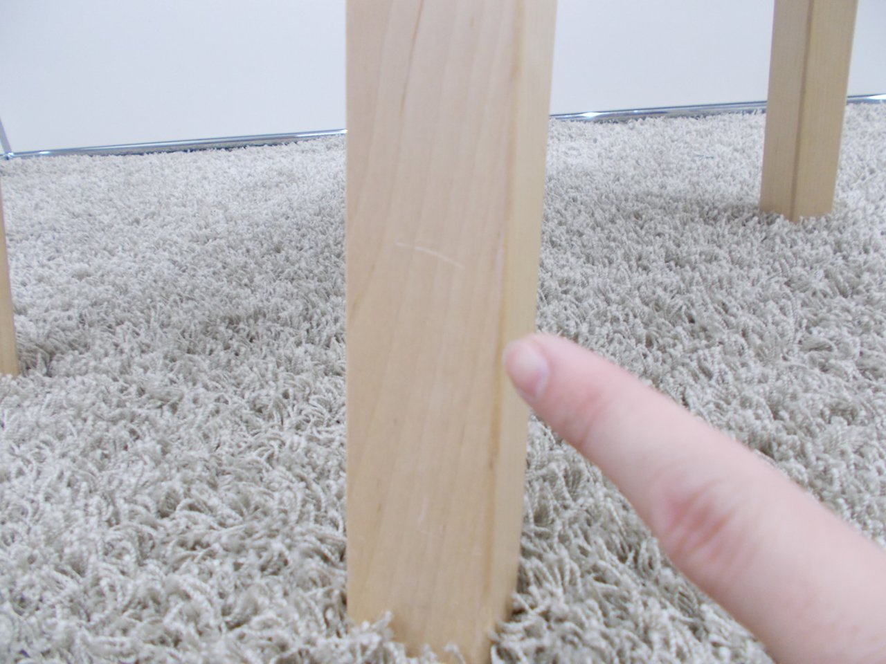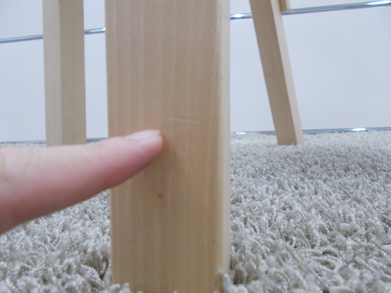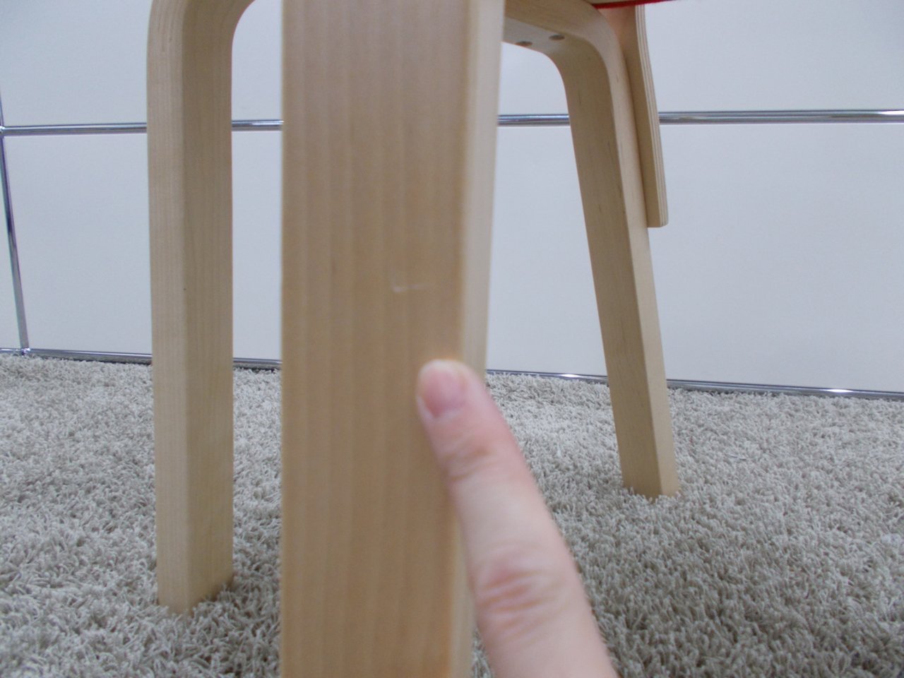 - かなり強い濃い黄ばみ・変色が商品全体にある。(例、座面・背もたれ、脚部等にある。)