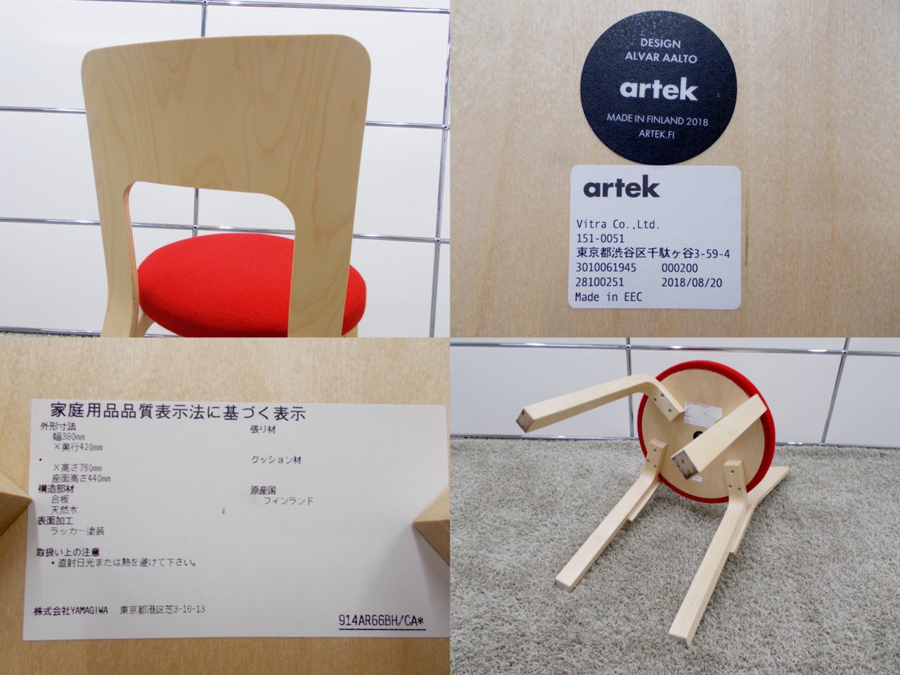 C)【2018年製】artek/アルテック チェア66 /アルヴァ・アールト 赤 北欧フィンランド- デザイナーズ家具センター
