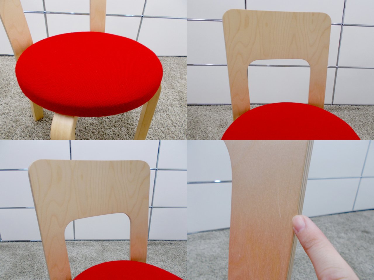 - 目立つ箇所あり傷・破れ・ほつれ・へたり・しわが多数または深い傷・破れ・ほつれ・へたり・しわが一部ある。※座面・背もたれ、シェル、脚部等にある。