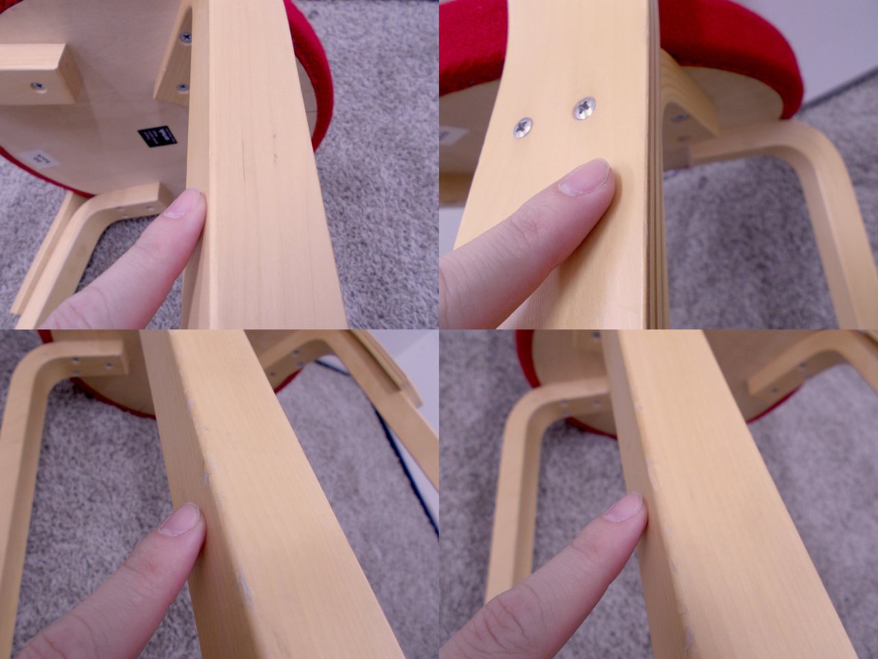- 目立つ箇所あり傷・破れ・ほつれ・へたり・しわが多数または深い傷・破れ・ほつれ・へたり・しわが一部ある。※座面・背もたれ、シェル、脚部等にある。