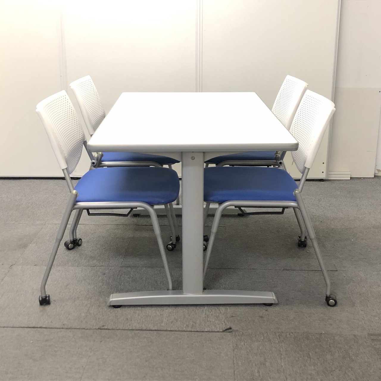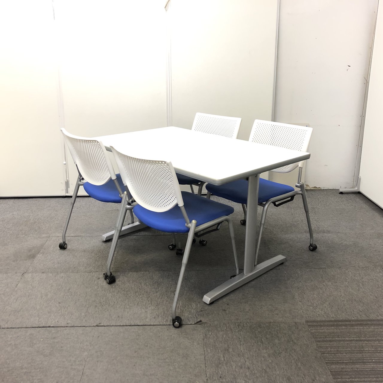 オカムラ製の人気ホワイトカラーのミーティングテーブル+ブルーカラーのチェア4脚です!!
