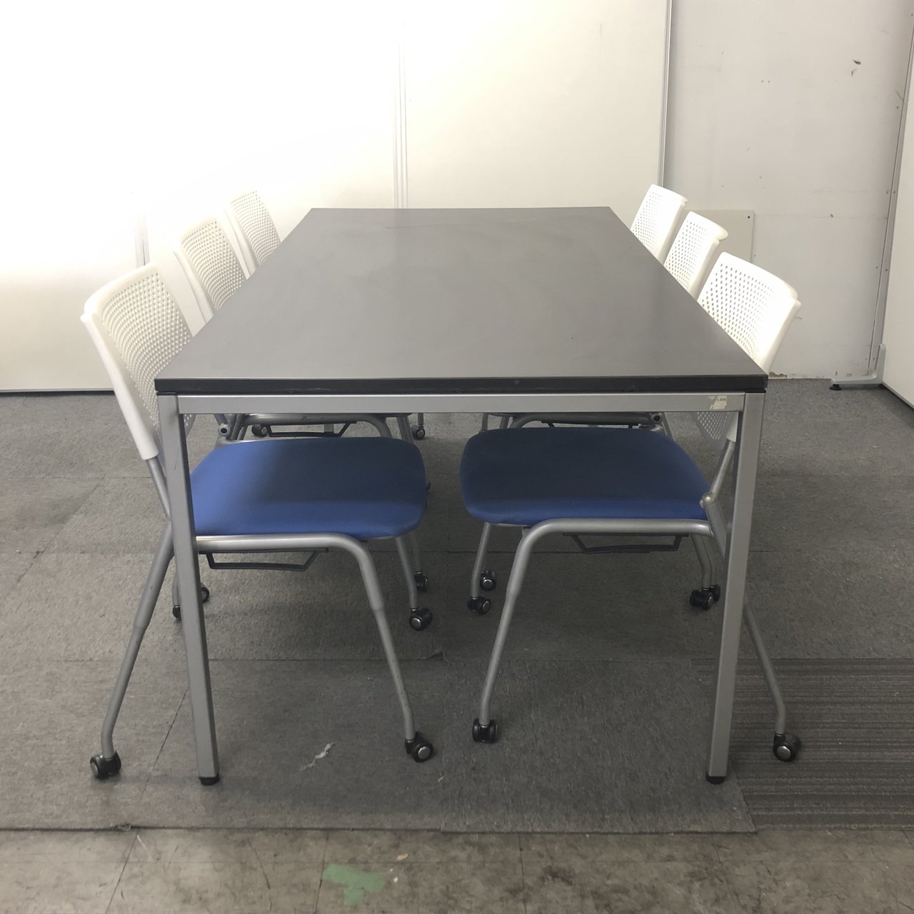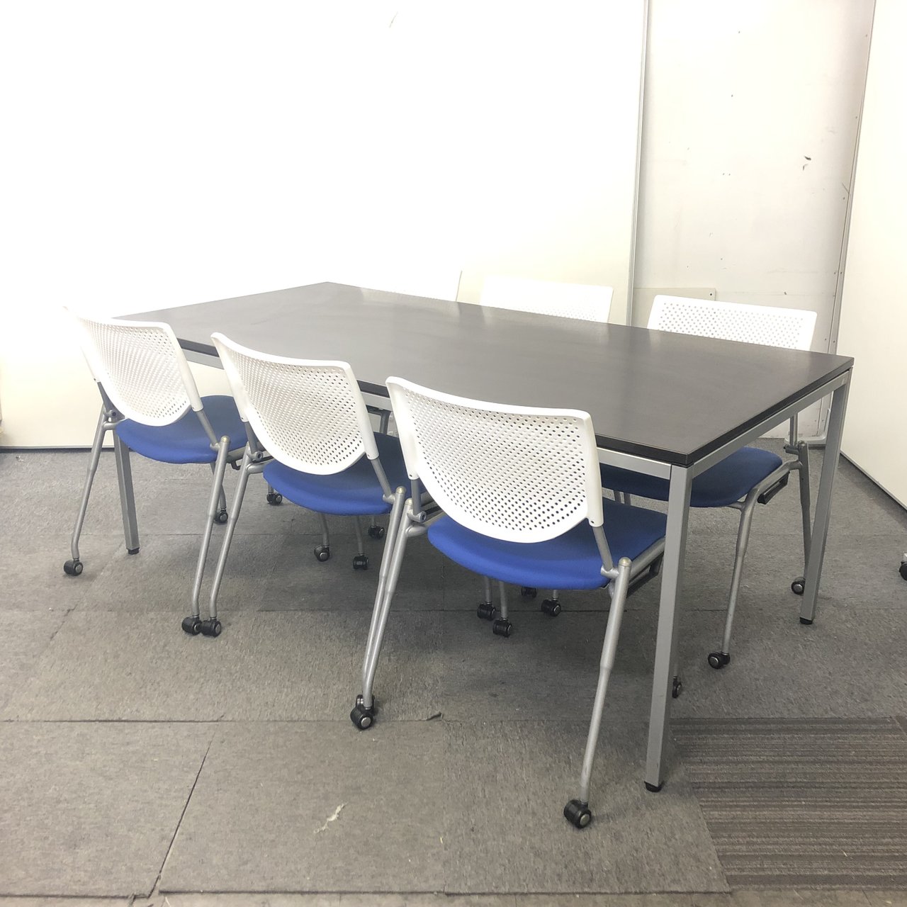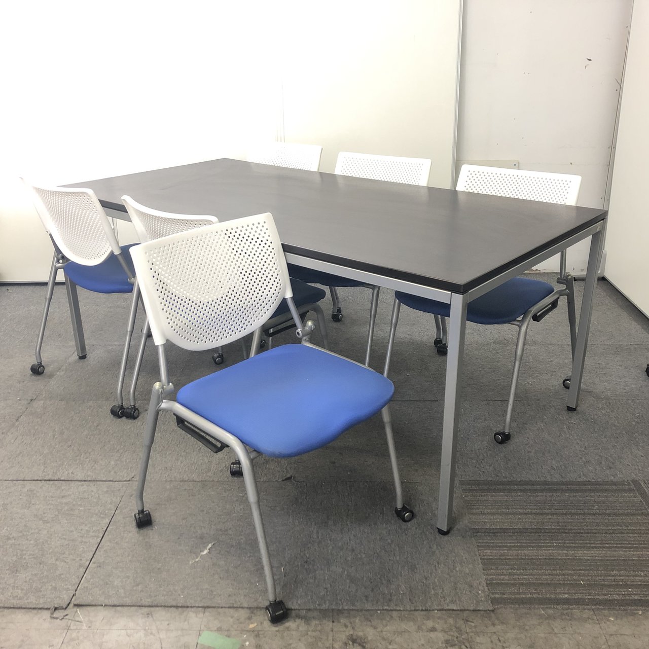 オカムラ製の渋めのブラウンカラーのミーティングテーブル+ブルーカラーのチェア4脚です!!