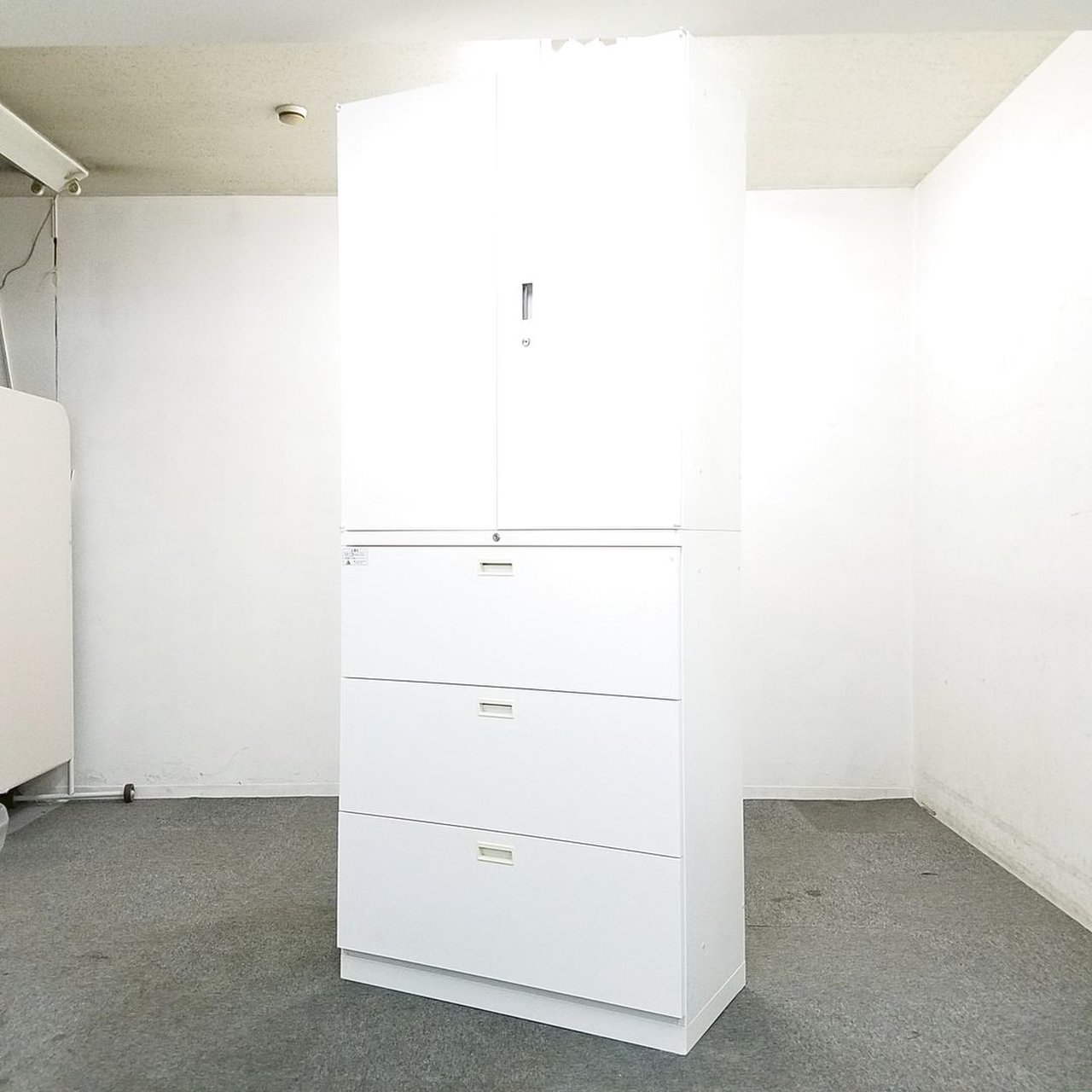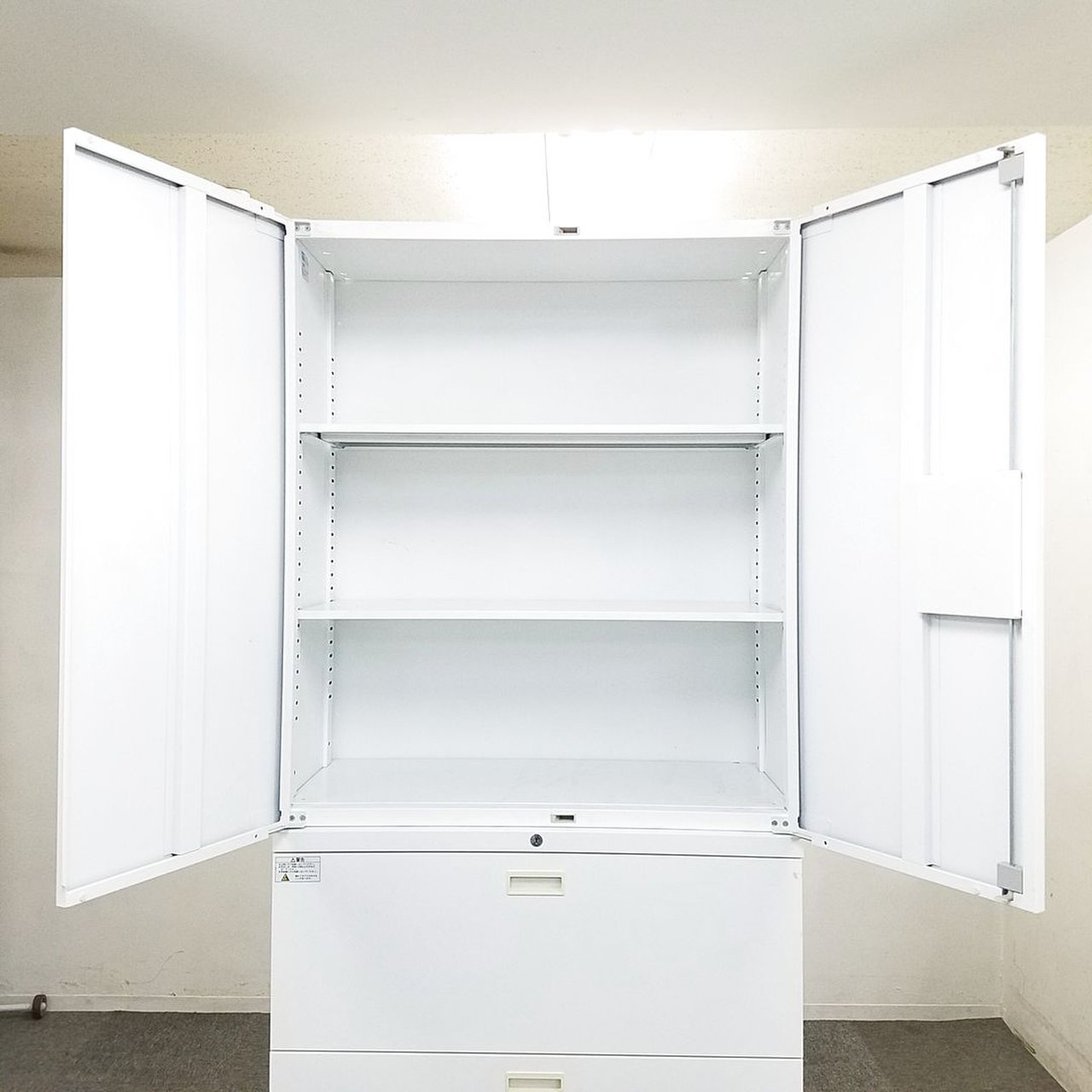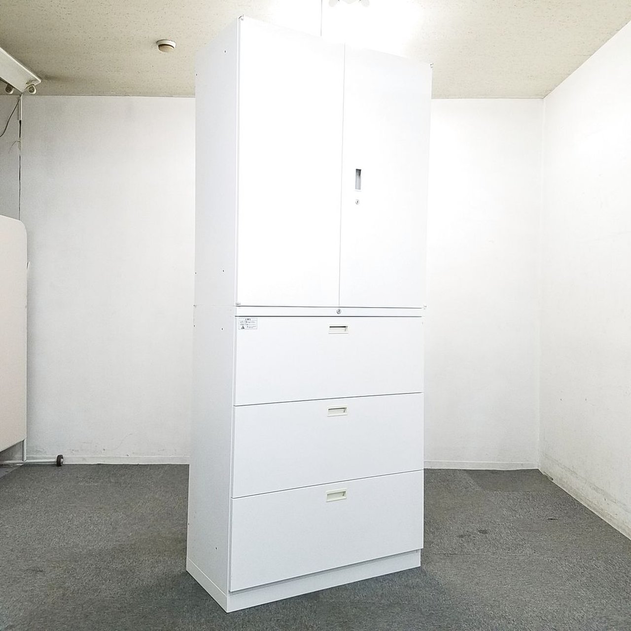 - 一部不具合ありそ引出の開閉不可、施錠不可、棚板無しといったの書庫の本来の効用を果たすための機能以外の一部が使用不可(例、扉、引出の開閉がしづらいなどがある。 )