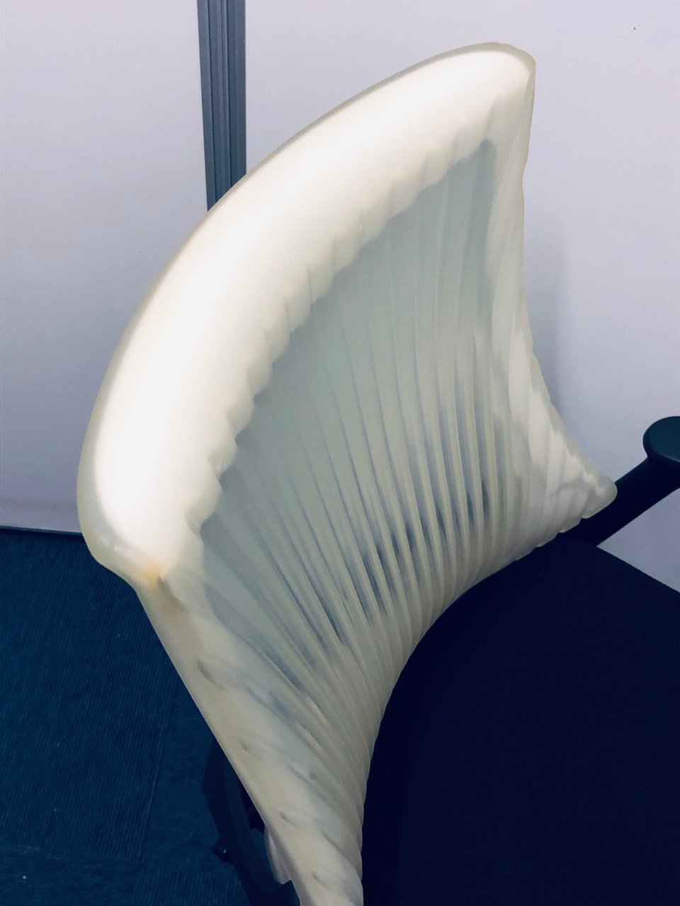 - かなり強い濃い黄ばみ・変色が商品全体にある。(例、座面・背もたれ、脚部等にある。)