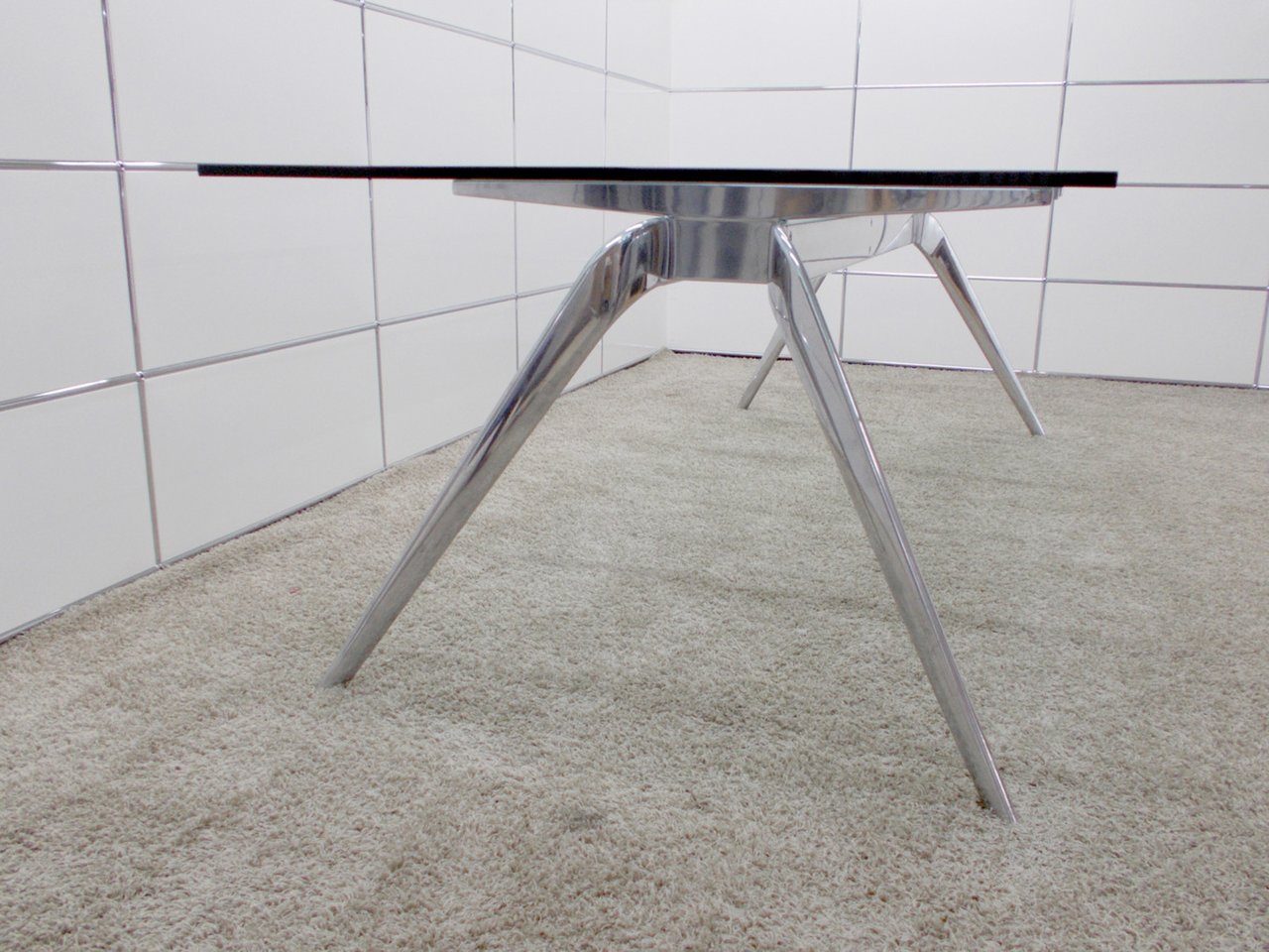 T-NO.1はアルミ製のベースメントに薄い天板を組み合わせた大型のテーブル。ダイニングテーブルとしてだけでなく、オフィスやレストランなど様々な用途に対応してくれます。