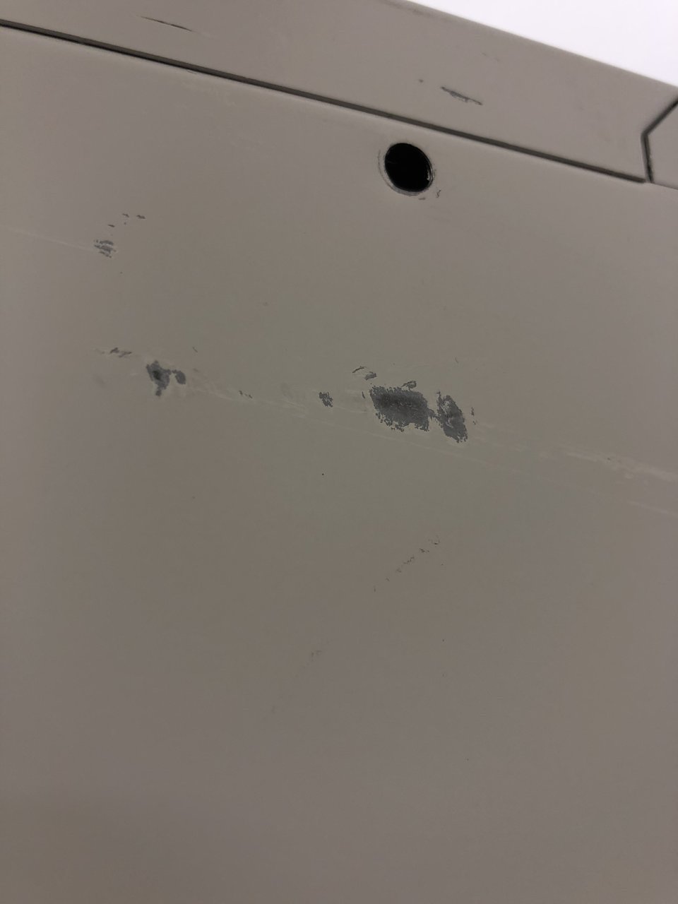 - 目立つ箇所あり傷・凹みが多数、深い傷・凹みが一部ある。(例、天板、正面、背部、サイド部分にある。)
