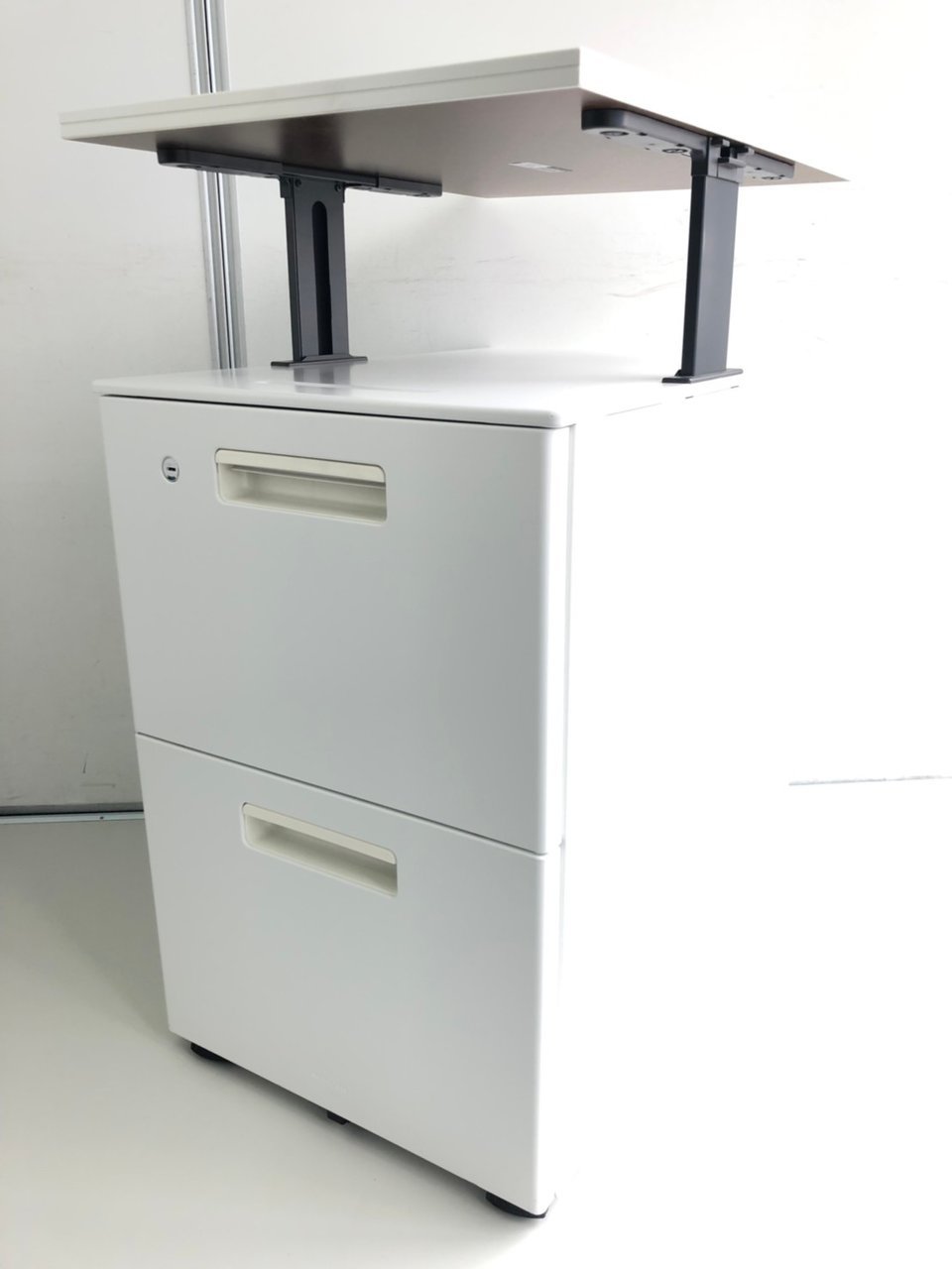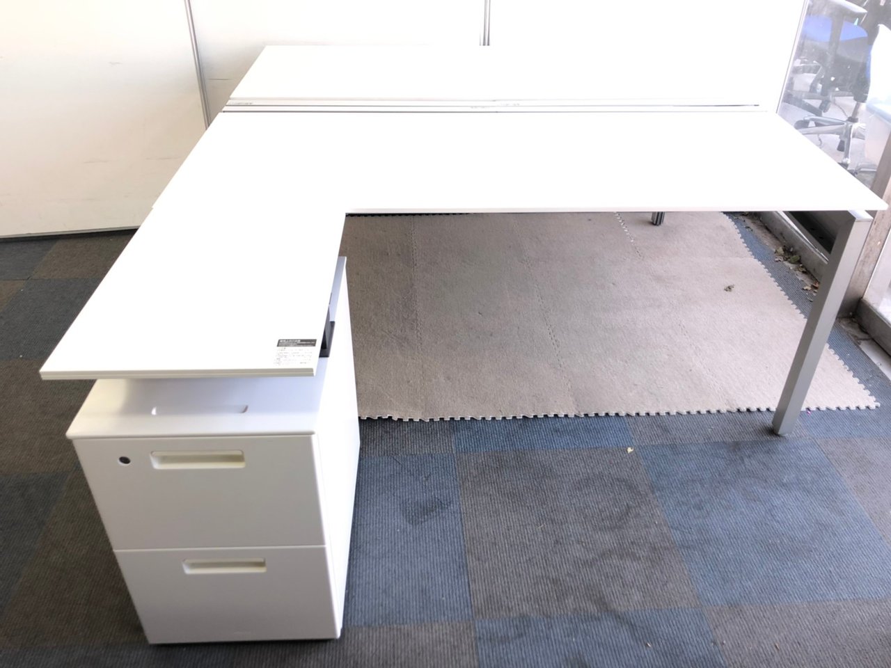 【デスクワゴンセット】人気のフリーアドレスデスク/天板昇降型ワゴン/自在にL字デスクを作れる!- 千葉店