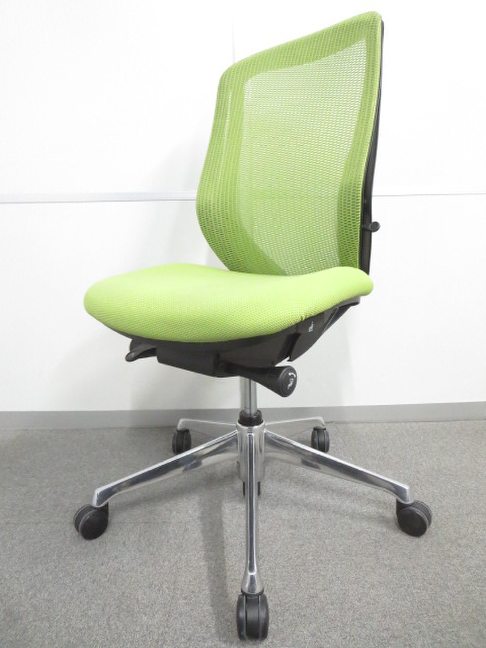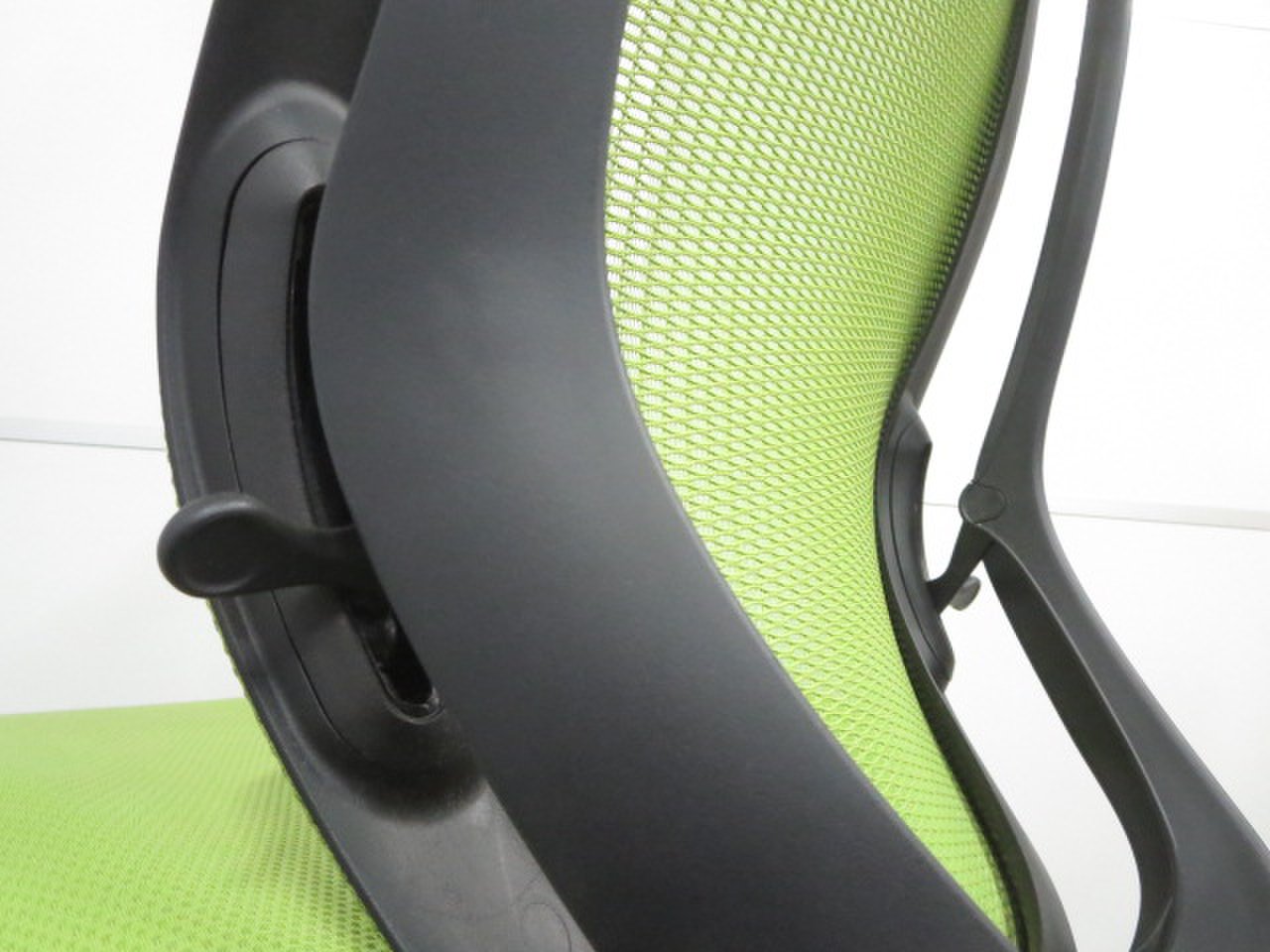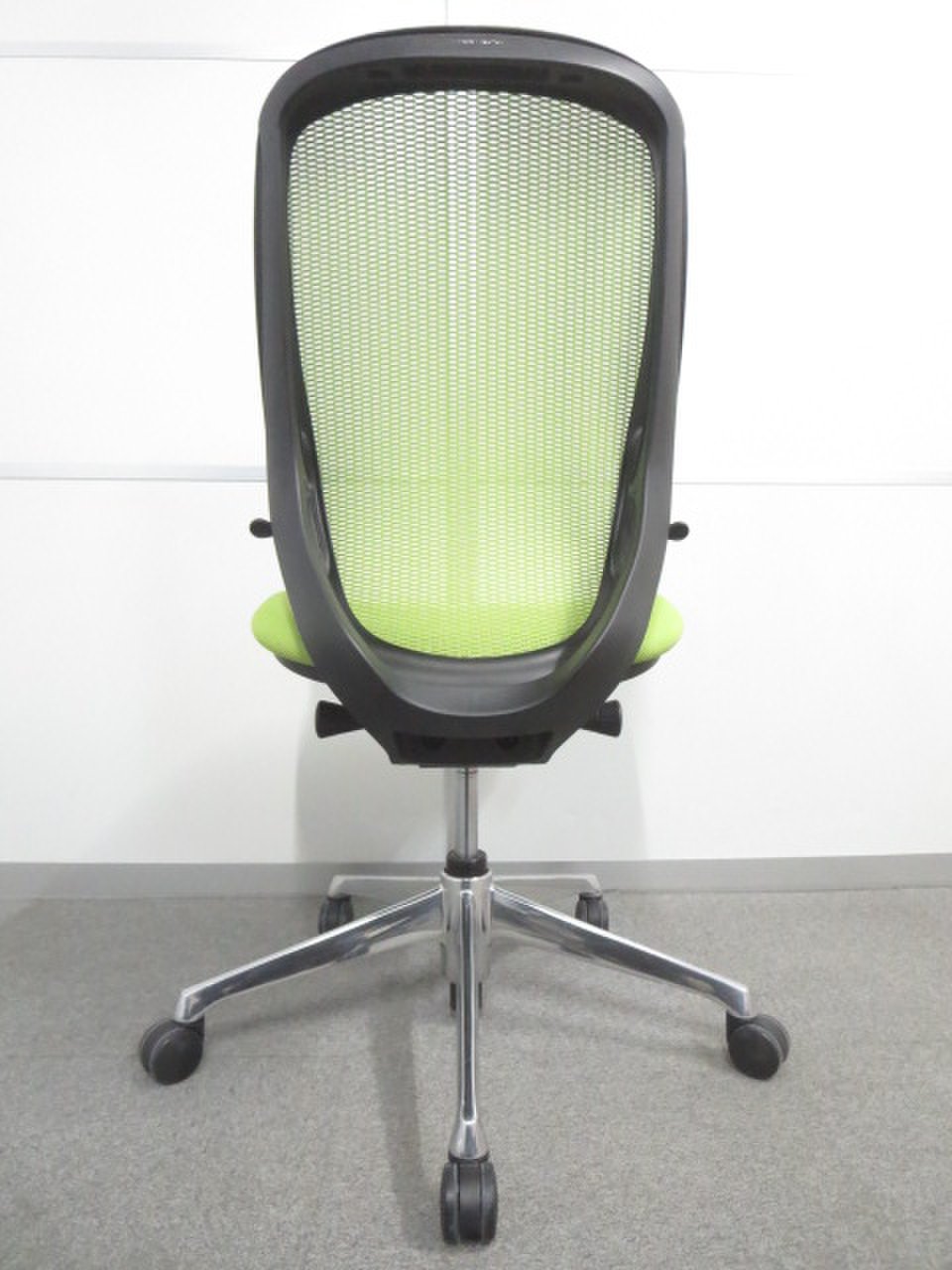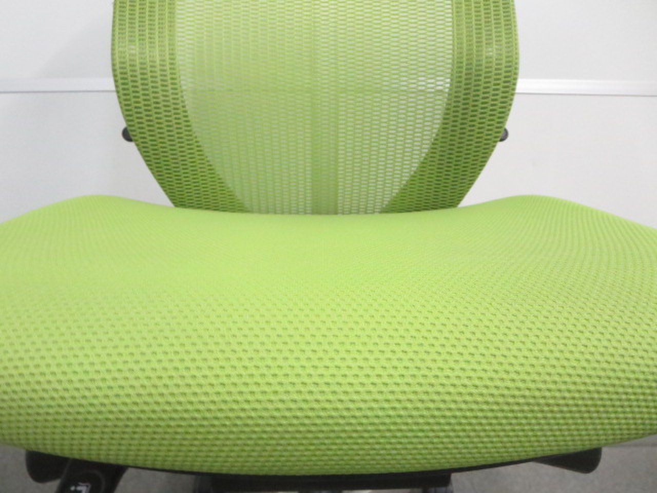 オカムラ製 シルフィ ライムグリーン ブラックフレーム 背面メッシュ ハイバック 樹脂脚 前傾チルト機能付き! オカムラ製品で最も人気を集める高機能メッシュチェア! 肘無しハイバックチェア!!