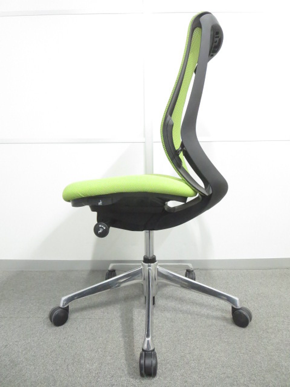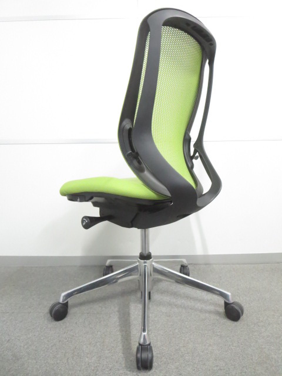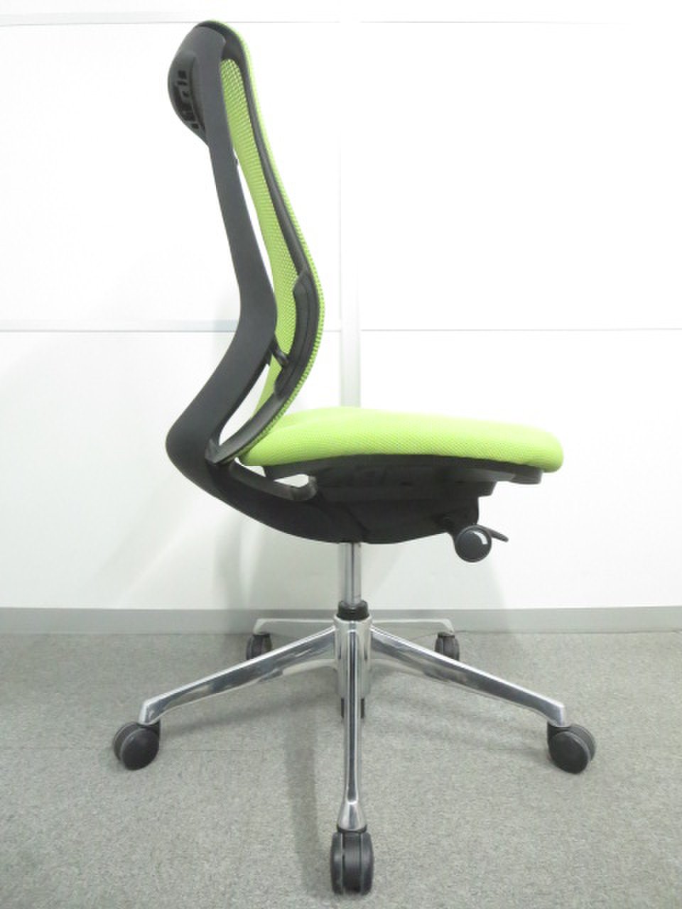 オカムラ製 シルフィ ライムグリーン ブラックフレーム 背面メッシュ ハイバック 樹脂脚 前傾チルト機能付き! オカムラ製品で最も人気を集める高機能メッシュチェア! 肘無しハイバックチェア!!