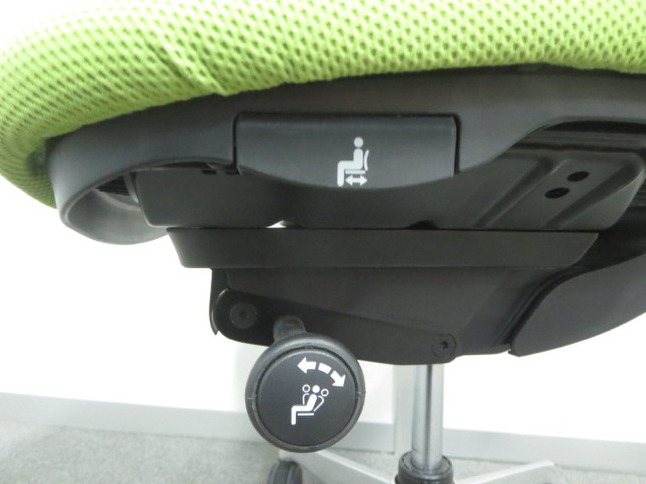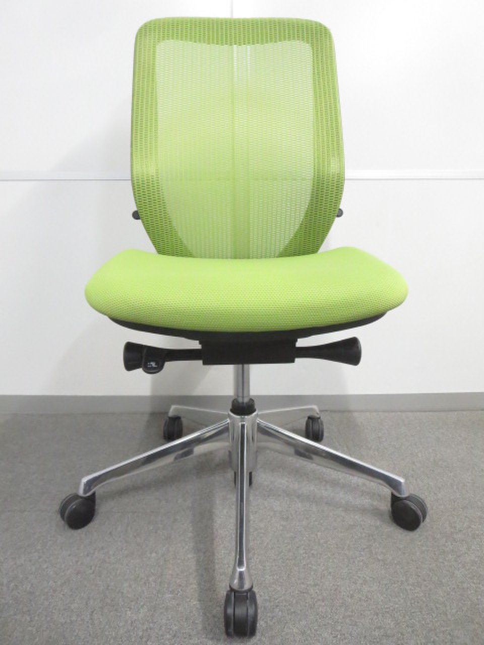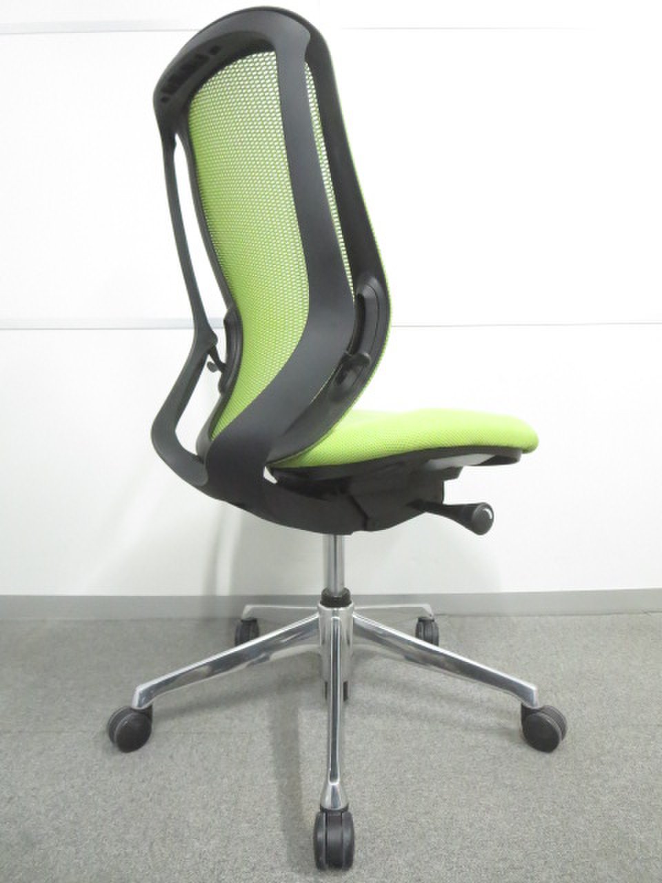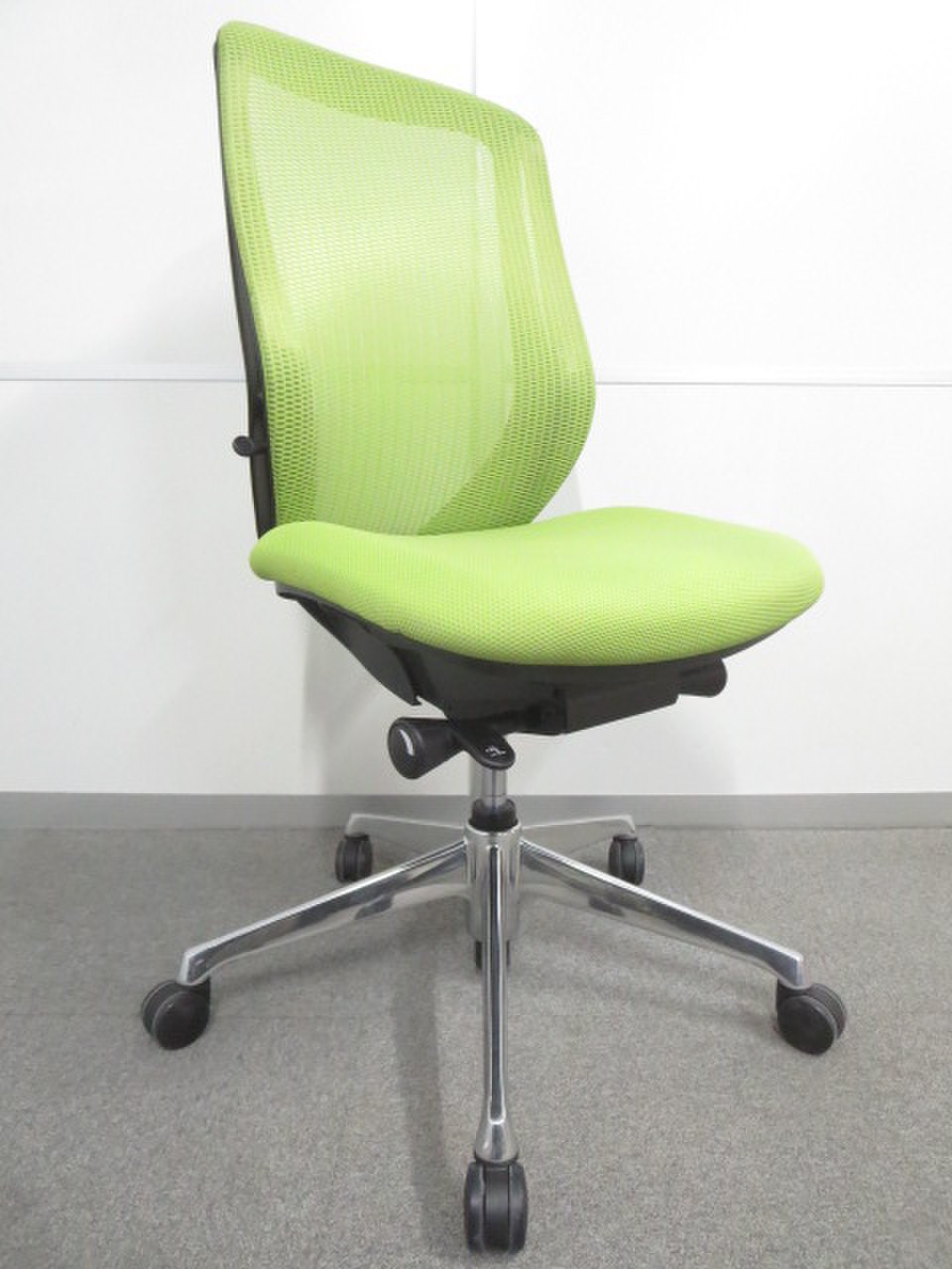 オカムラ製 シルフィ ライムグリーン ブラックフレーム 背面メッシュ ハイバック 樹脂脚 前傾チルト機能付き! オカムラ製品で最も人気を集める高機能メッシュチェア! 肘無しハイバックチェア!!