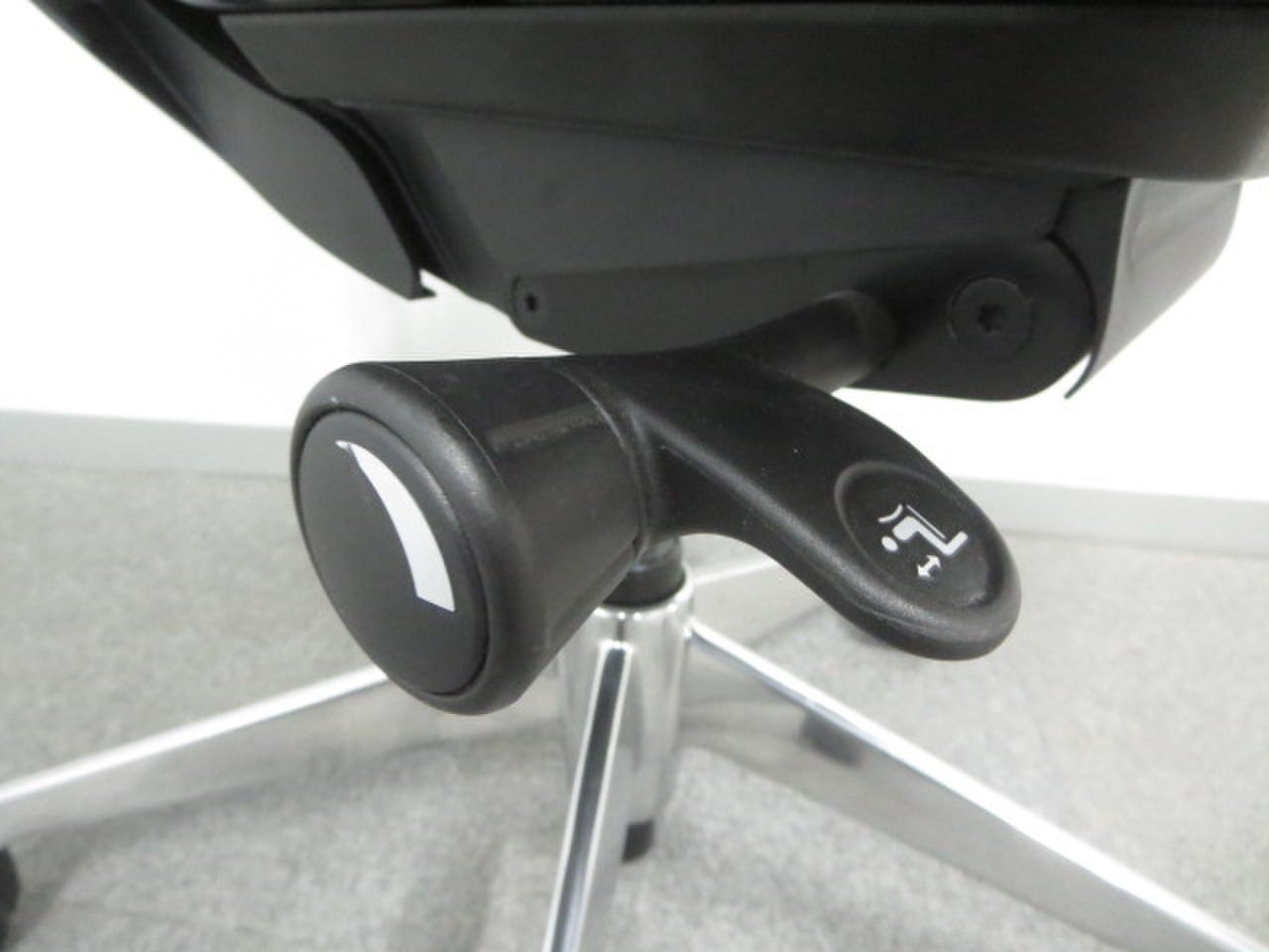 - 座面右下のダイヤル操作で、リクライニングの強弱調整が行えます。これまでのダイヤル式よりも、少ない回転数で、最弱?最強の調整が可能です。