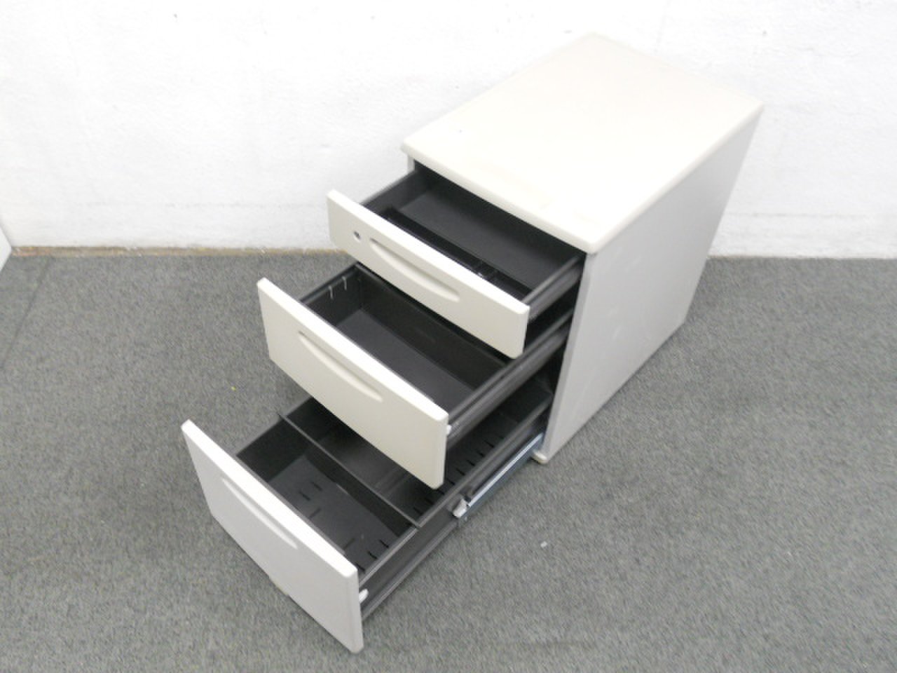 【分別収納に便利!3段ワゴン】オカムラ製/SDシリーズ/ライトスモーク色■キャスター付き。デスク下における! ★- 埼玉本店