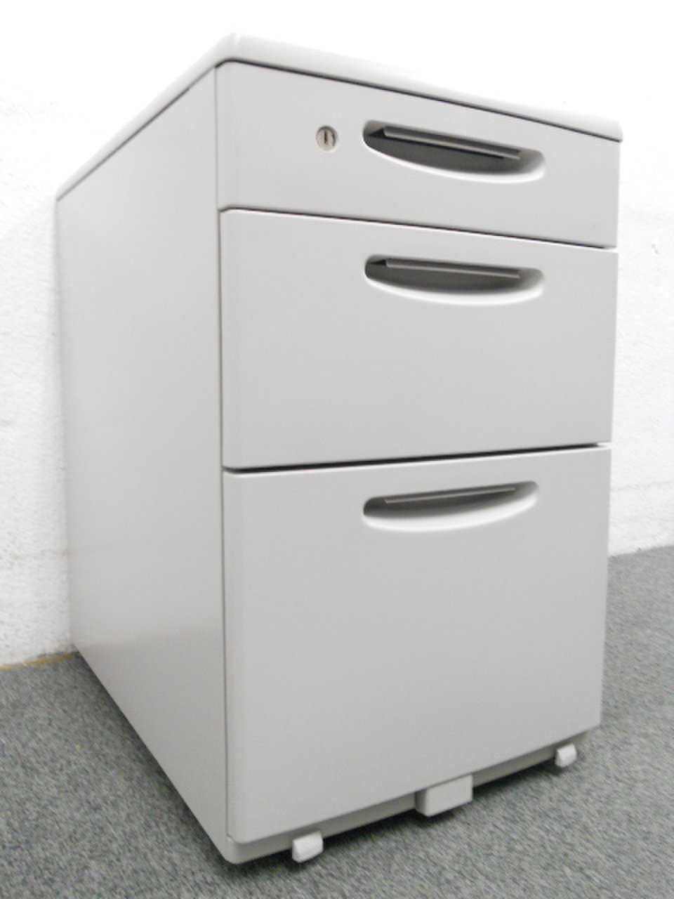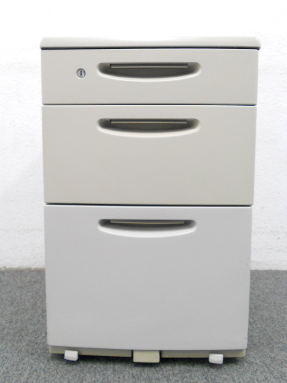 【定価約7万円】【天板の把手とキャスターで移動がらくらく!シンプルでスタンダードな3段ワゴン!】■オカムラ(okamura)製 SDシリーズ 3段ワゴン デスクインワゴン H610mm ■ニューグレー ■シリンダー錠