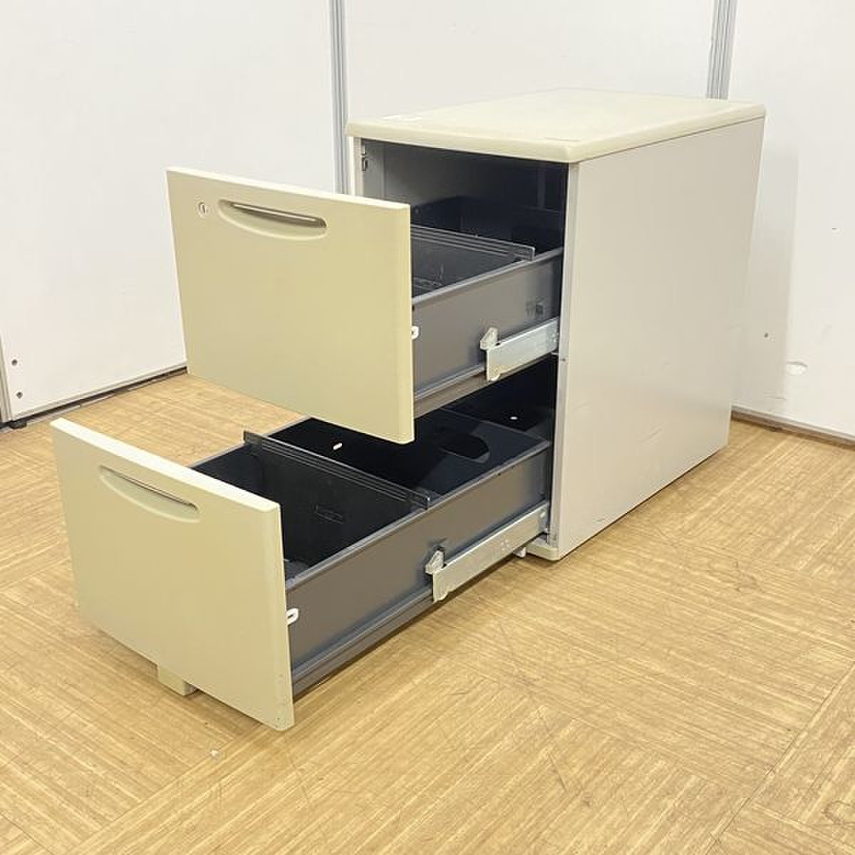 【大容量収納ならこれ!A4用紙が2段分収納可能!】■オカムラ(okamura)製 SDシリーズ 2段ワゴン デスクインワゴン H610mm ■ニューグレー ■シリンダー錠