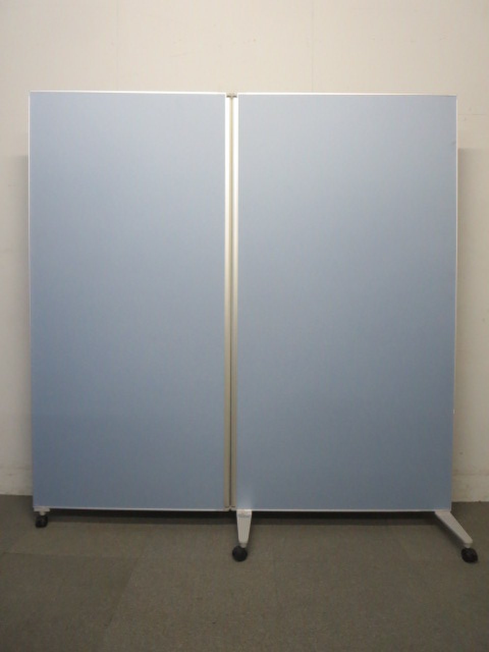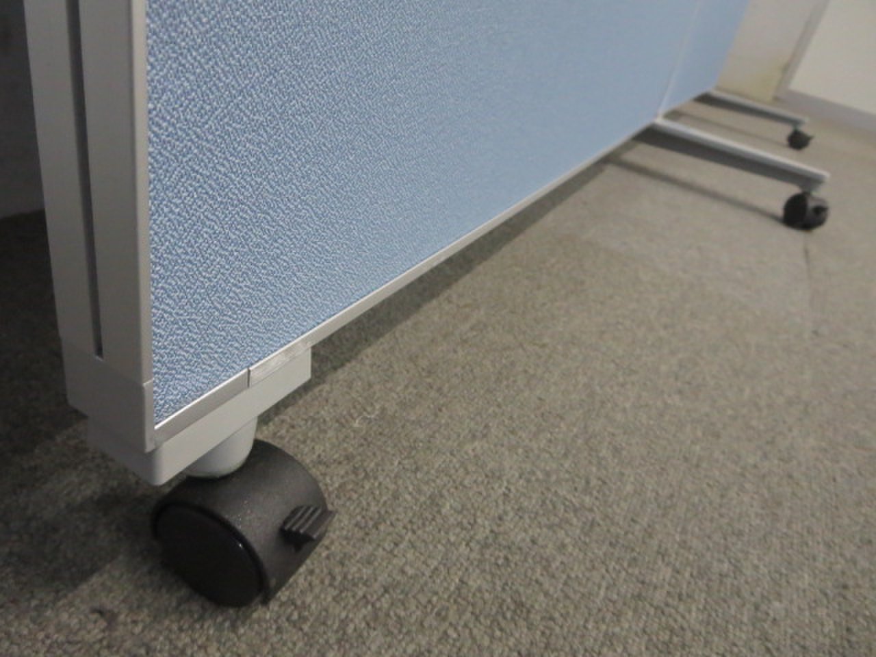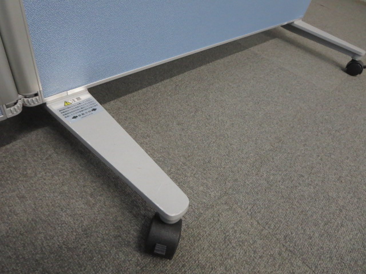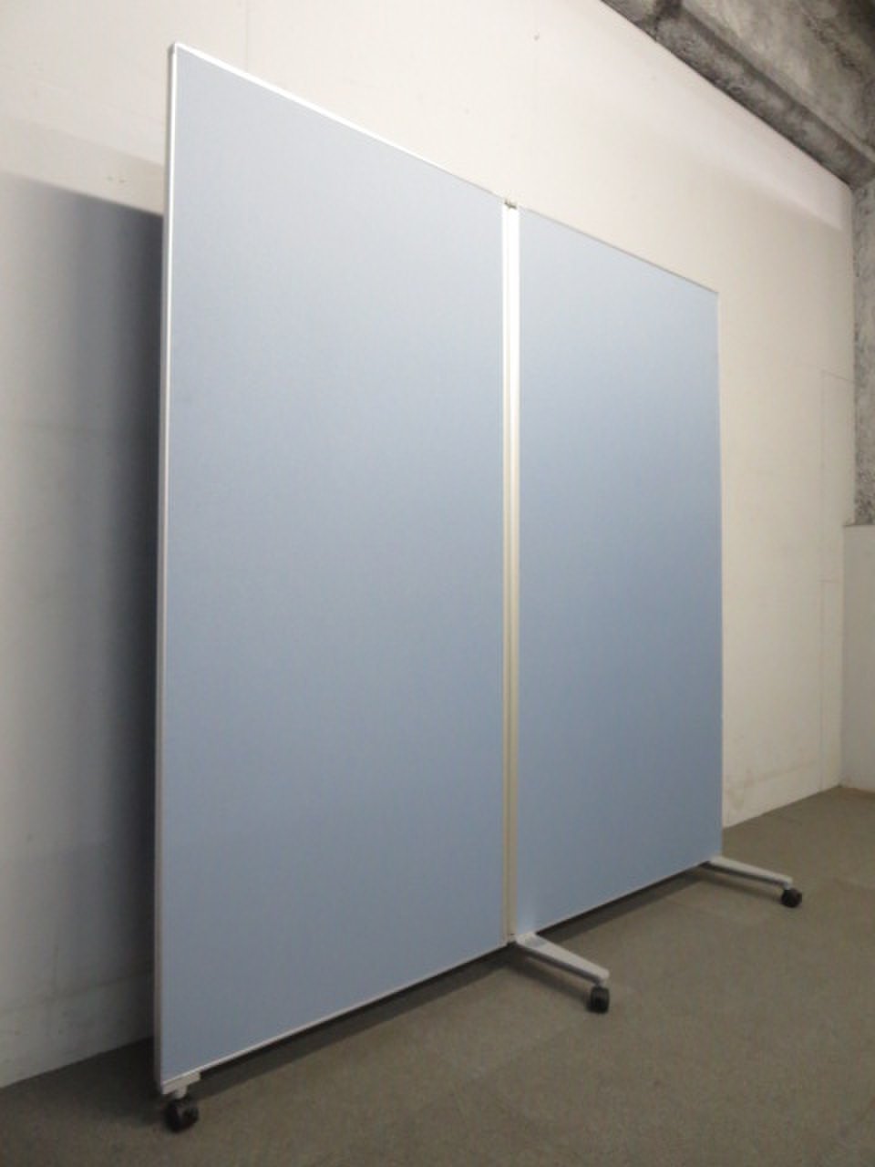 【キャスター付で便利に使える!】■オカムラ製 2連パーティション ペールブルー ■2連衝立パネル【折り畳み式間仕切り】- 川崎店