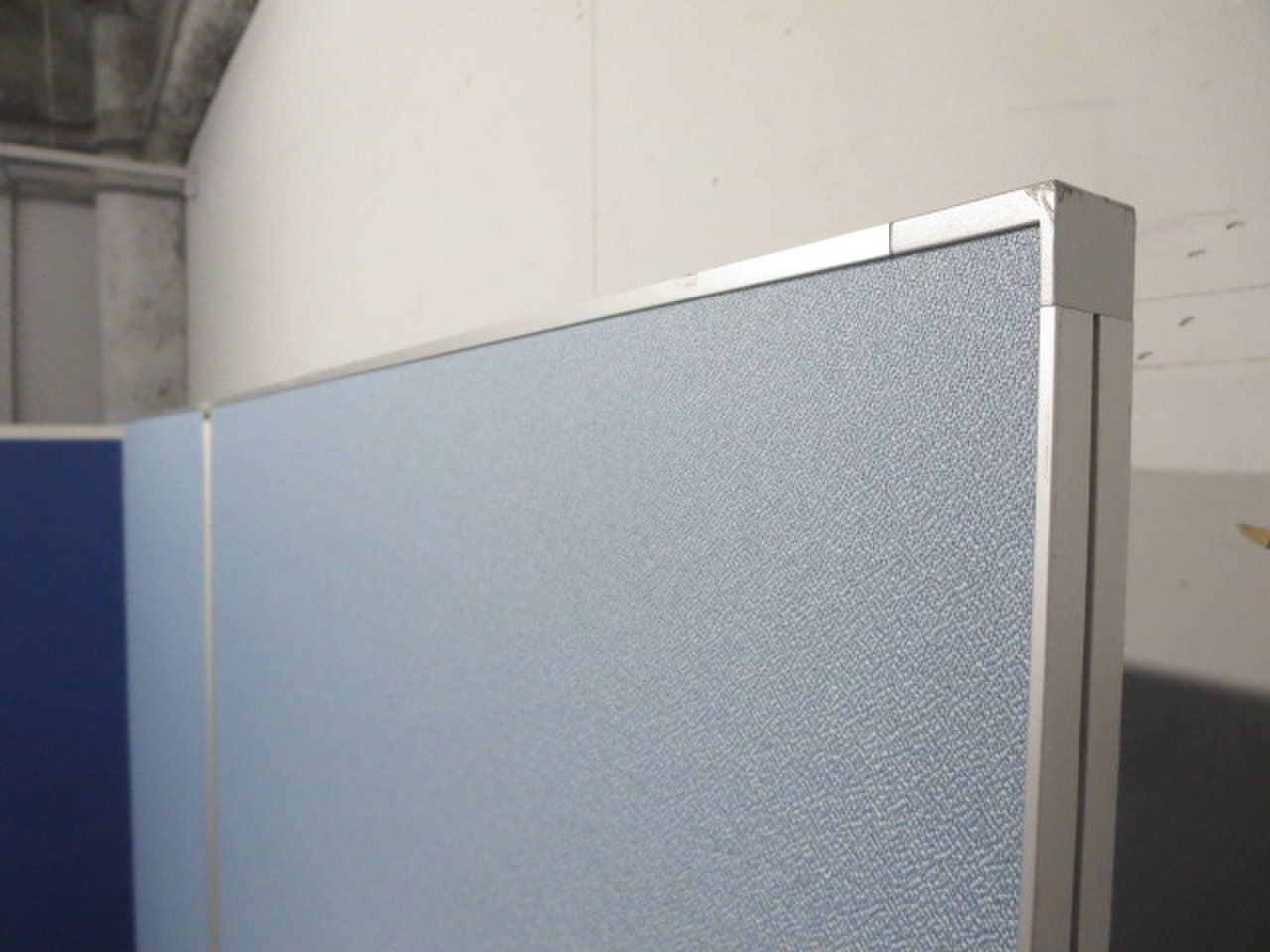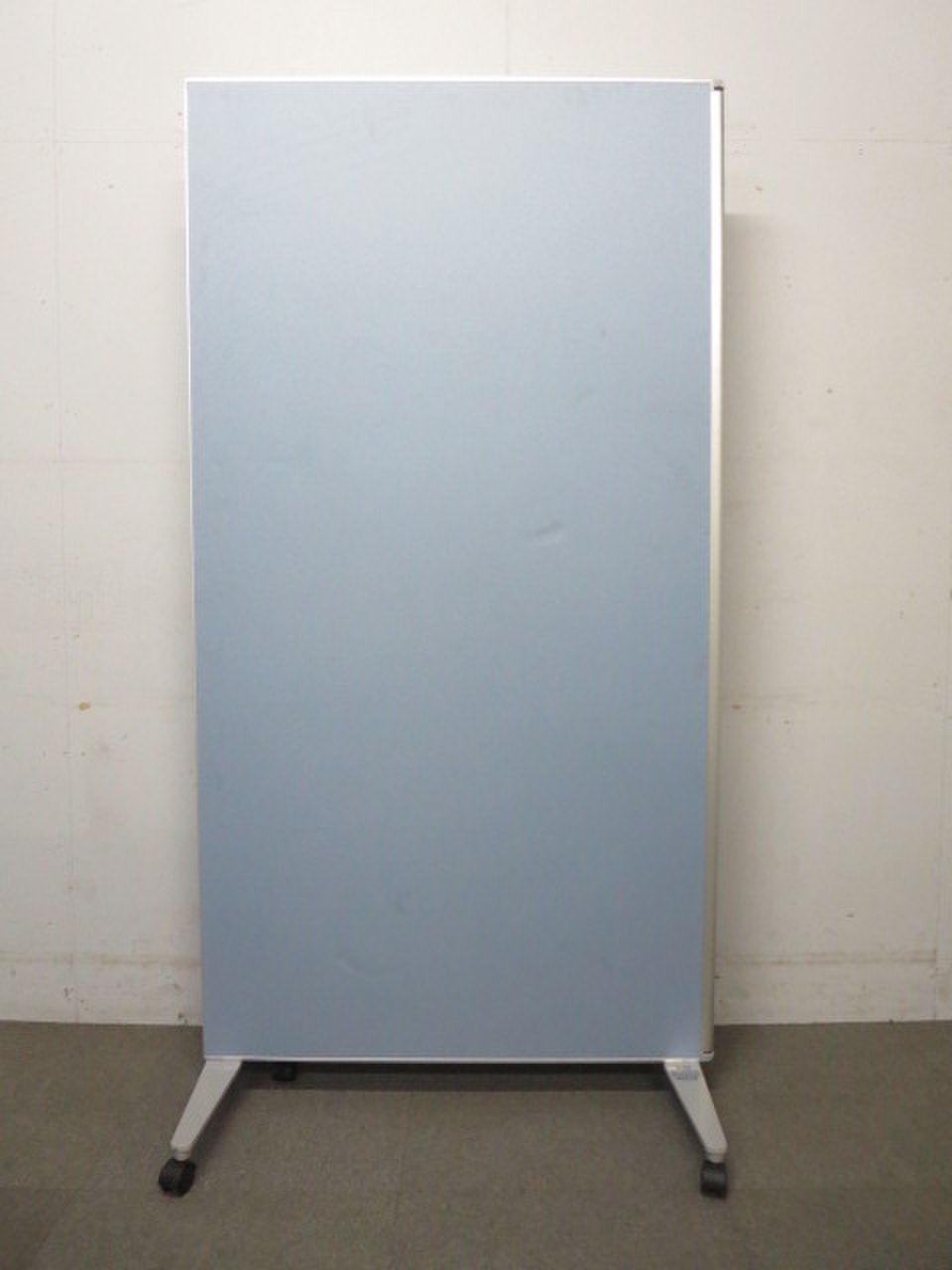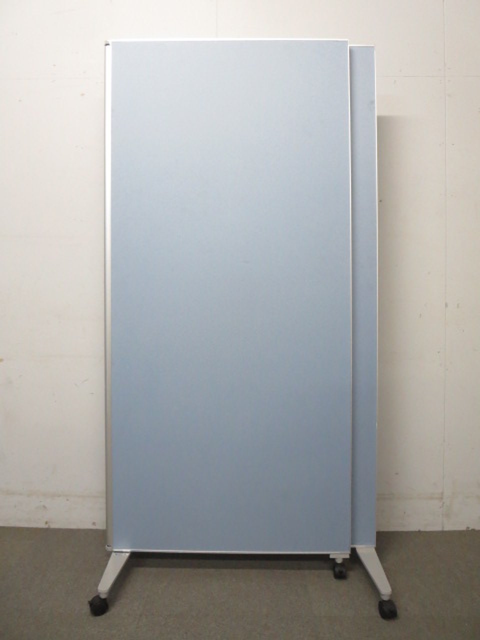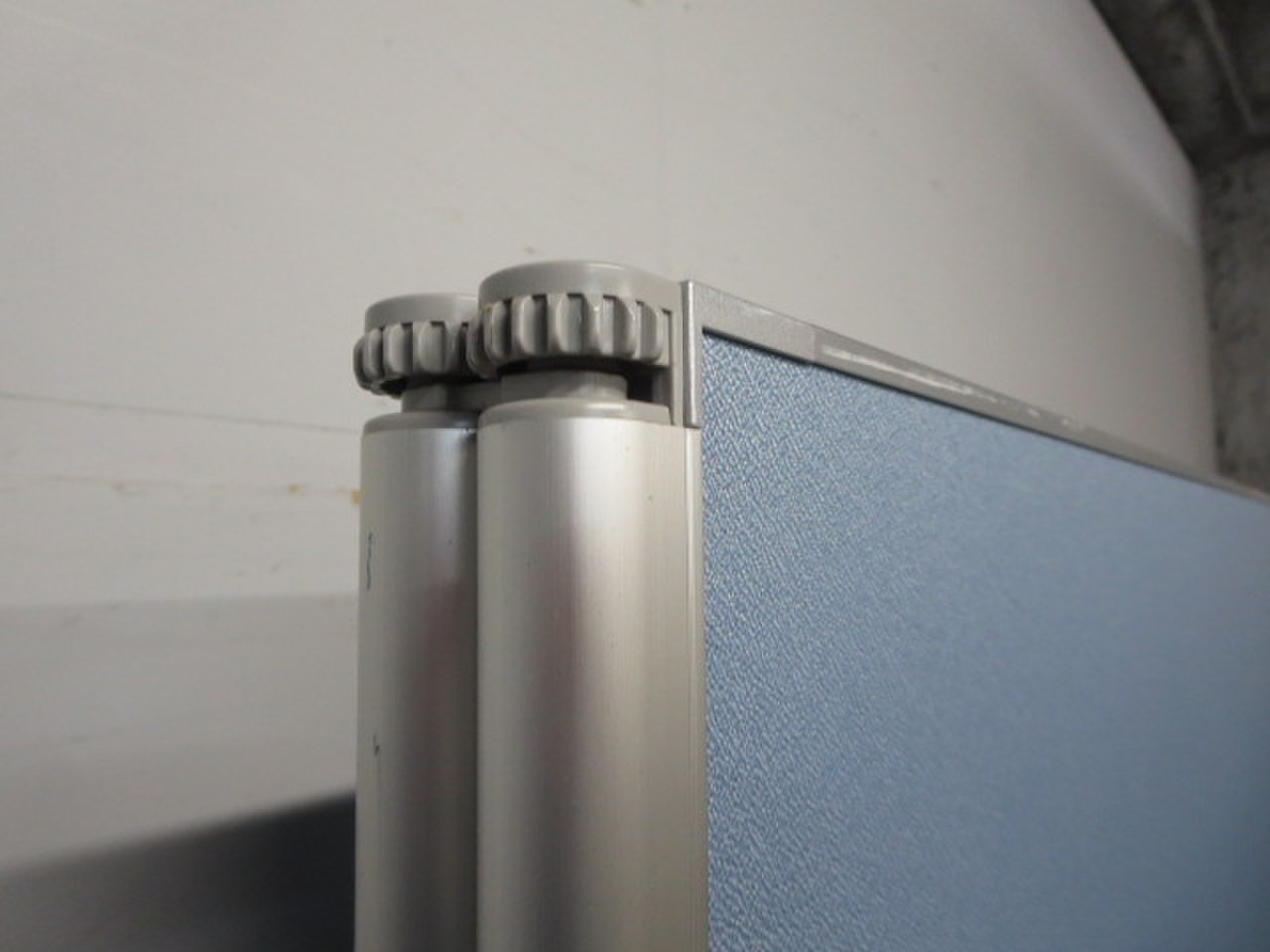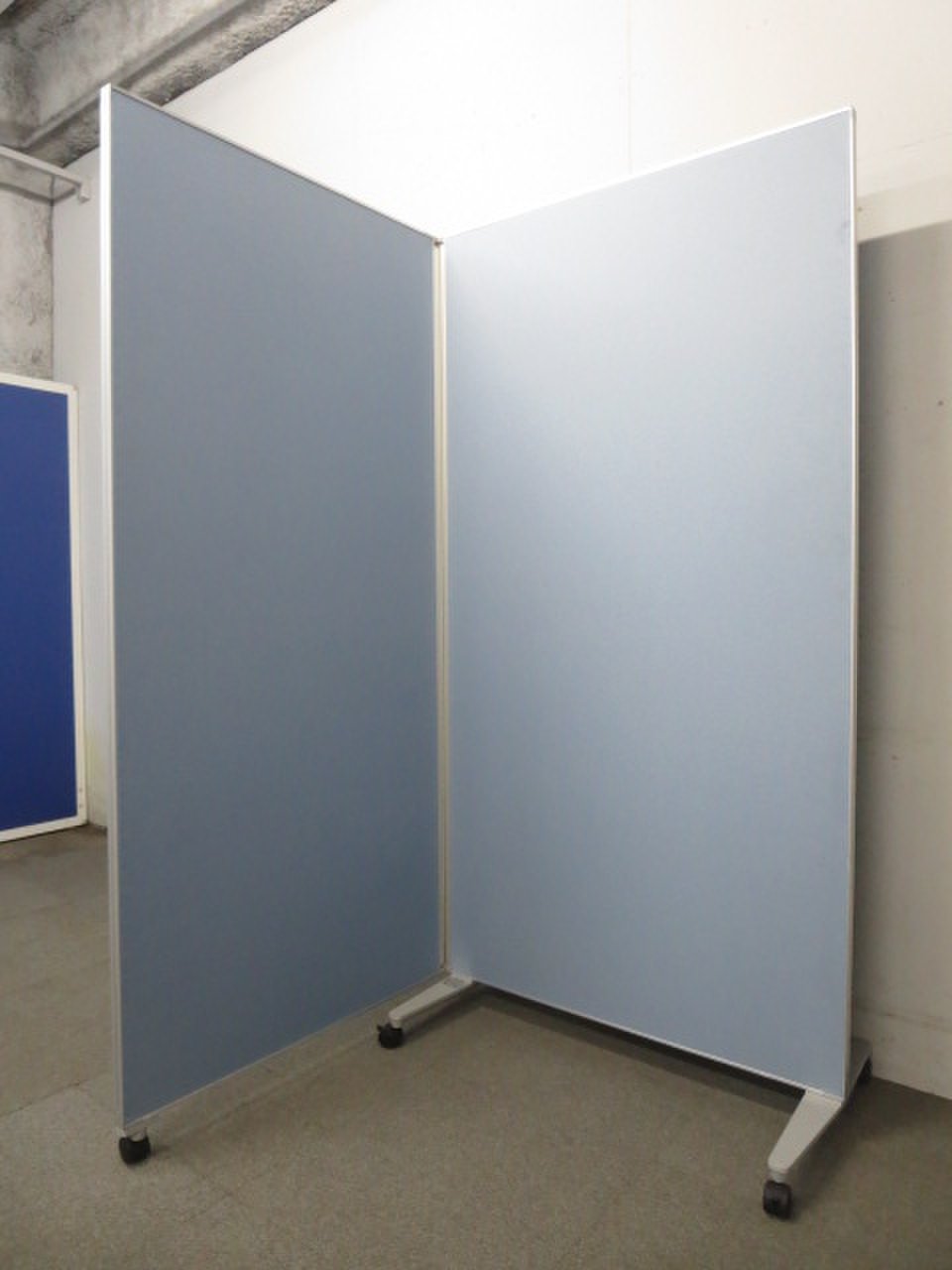 【キャスター付で便利に使える!】■オカムラ製 2連パーティション ペールブルー ■2連衝立パネル【折り畳み式間仕切り】- 川崎店