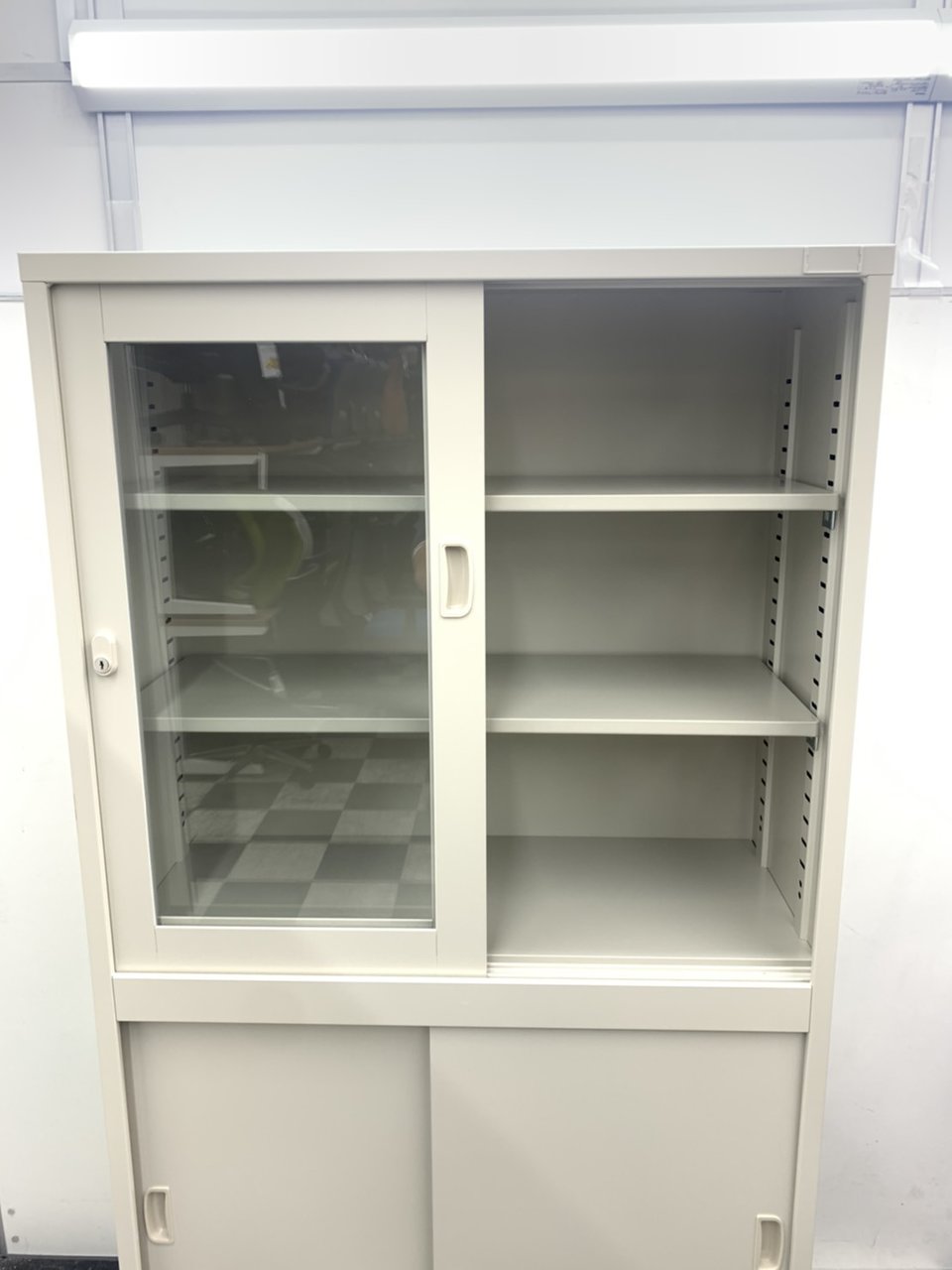 生興製のコンビ書庫、ガラス+スチール引き戸書庫が入荷です。