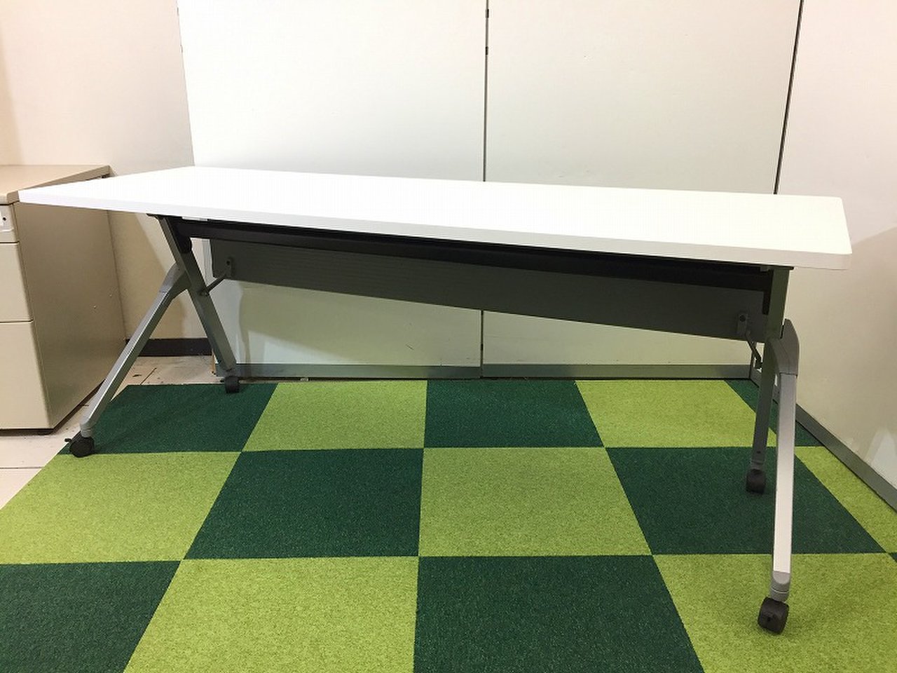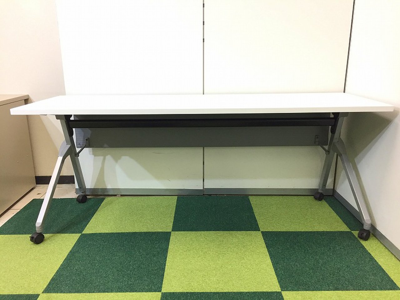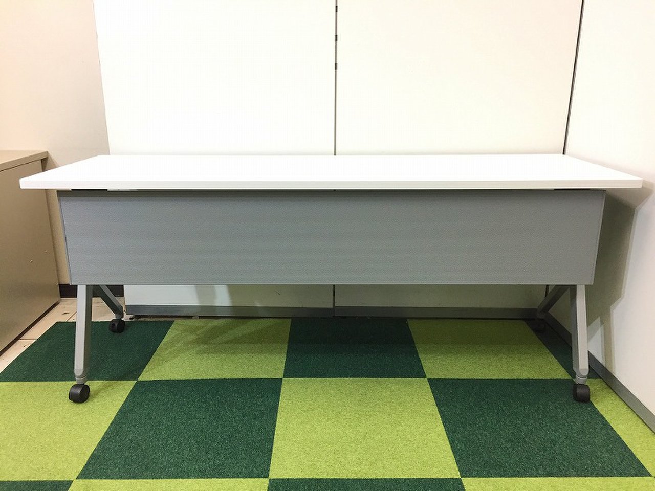 【西】オカムラ製 フラプターシリーズ ホワイト W1500/D450/H720サイズ キャスター 平衡収納 会議室・セミナー等に重宝されております! W1500サイドスタックテーブル!!