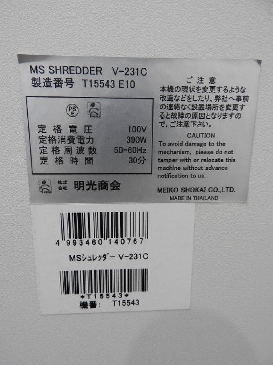 【中古】 Vシリーズ MS-V231CL 明光商会 シュレッダー 305006