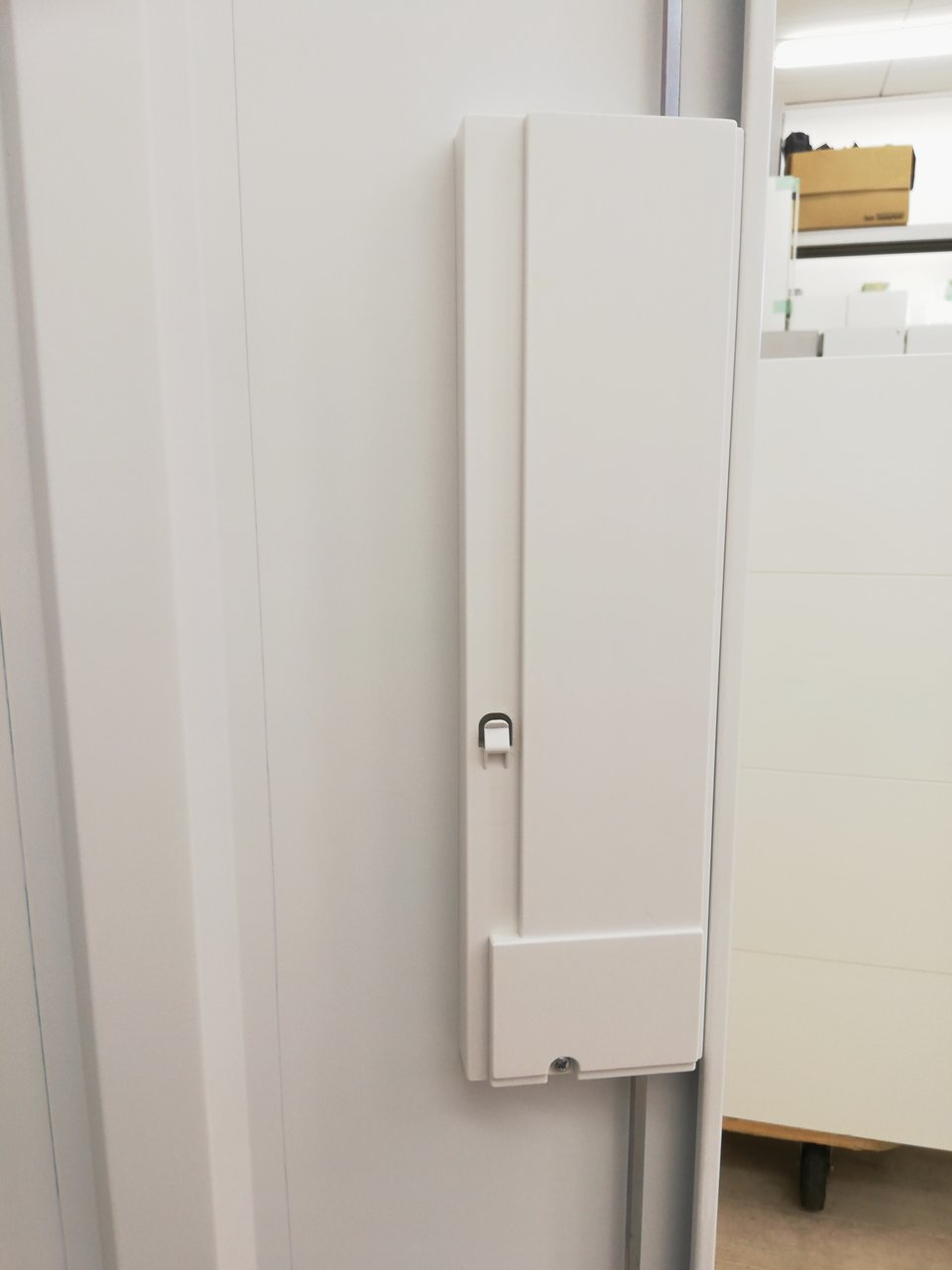 - 扉や引出しに、ラッチ機構を装備。地震時に勝手に扉や引出しが開き、収納物がユニットから飛び出すのを抑制します。