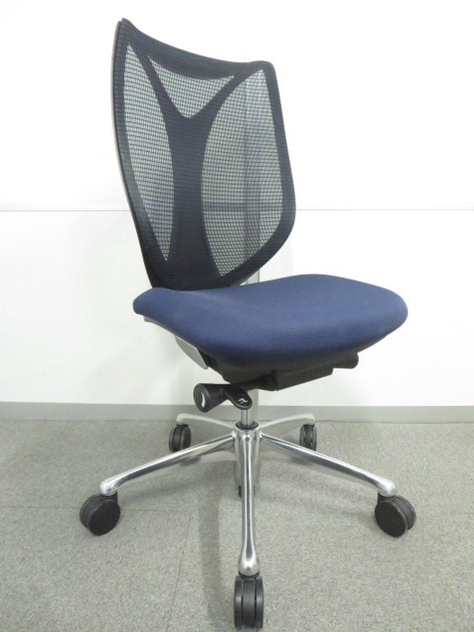 オカムラ製 サブリナ ダークブルー ブラックフレーム 肘無し ハイバック 背面メッシュ ランバーサポート付 前傾チルト付きで作業効率アップ! 流れるような美しいフォルムの最高級メッシュチェア! 肘無しハイバックチェア!!