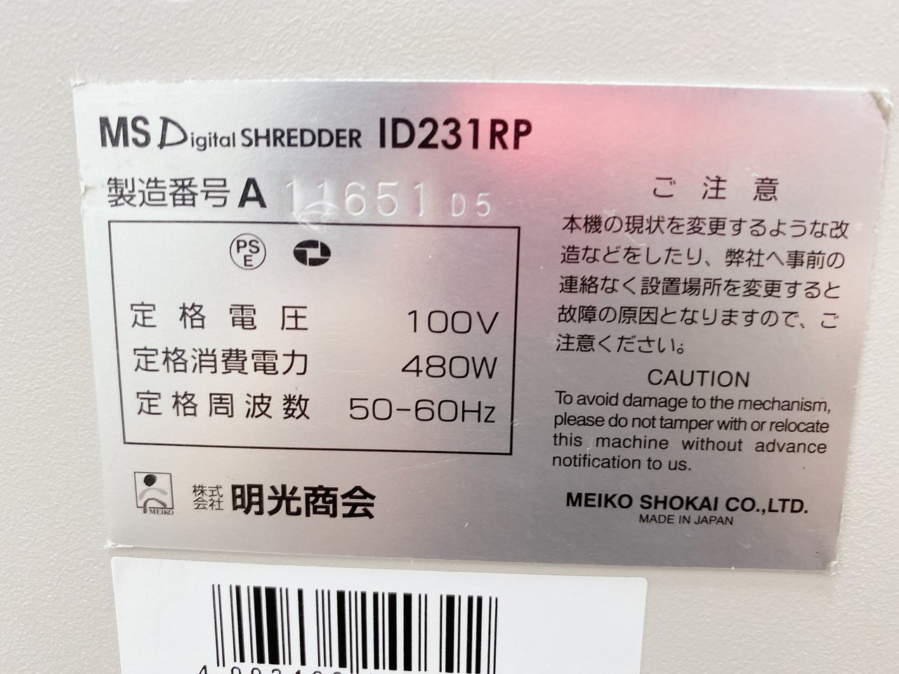 【中古】 IDシリーズ MS-ID231SR 明光商会 シュレッダー 305118