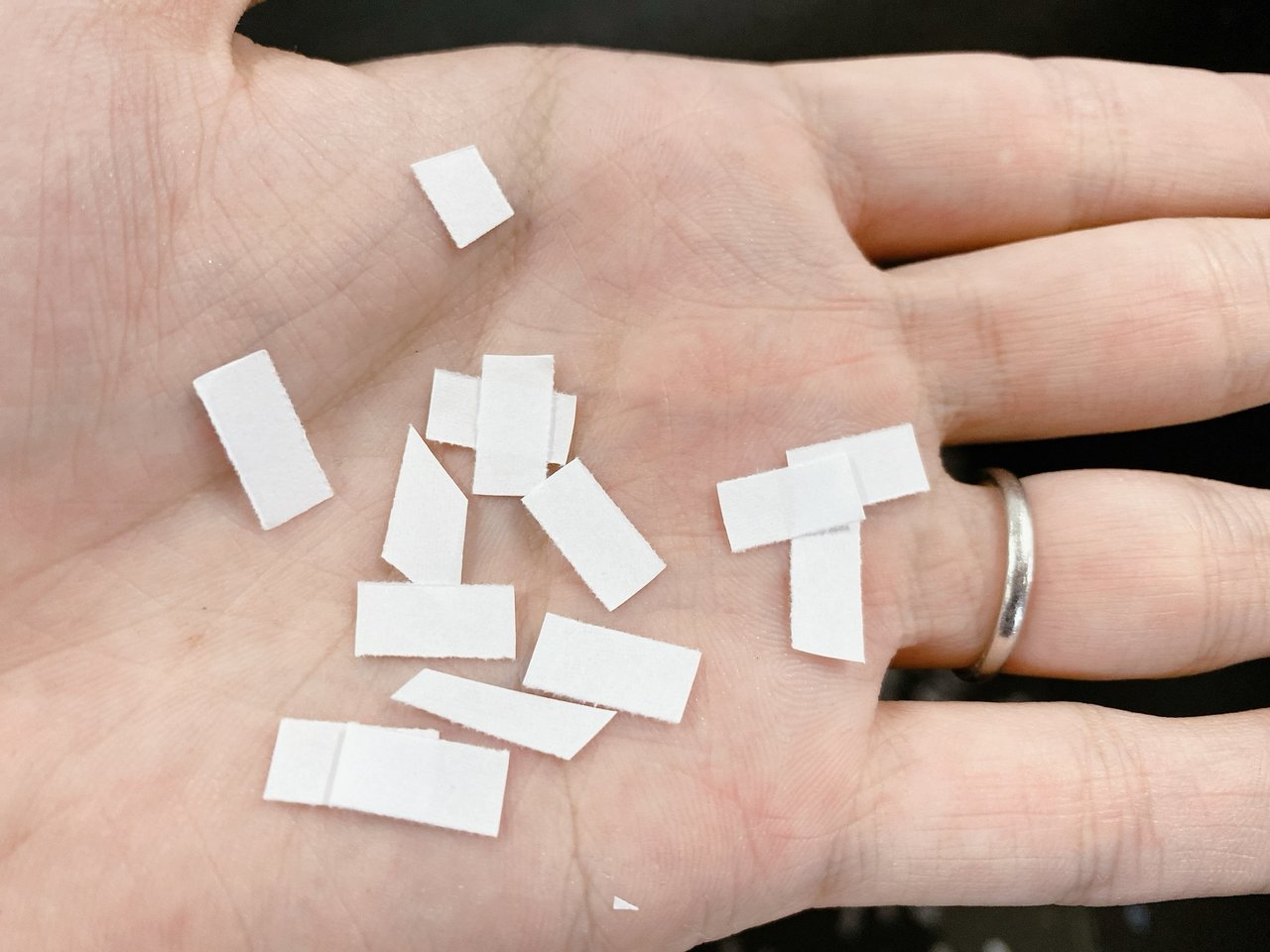 一度に55枚の大量細断出来るクズが効率よく積層されるフラットスクエアカットを採用しており