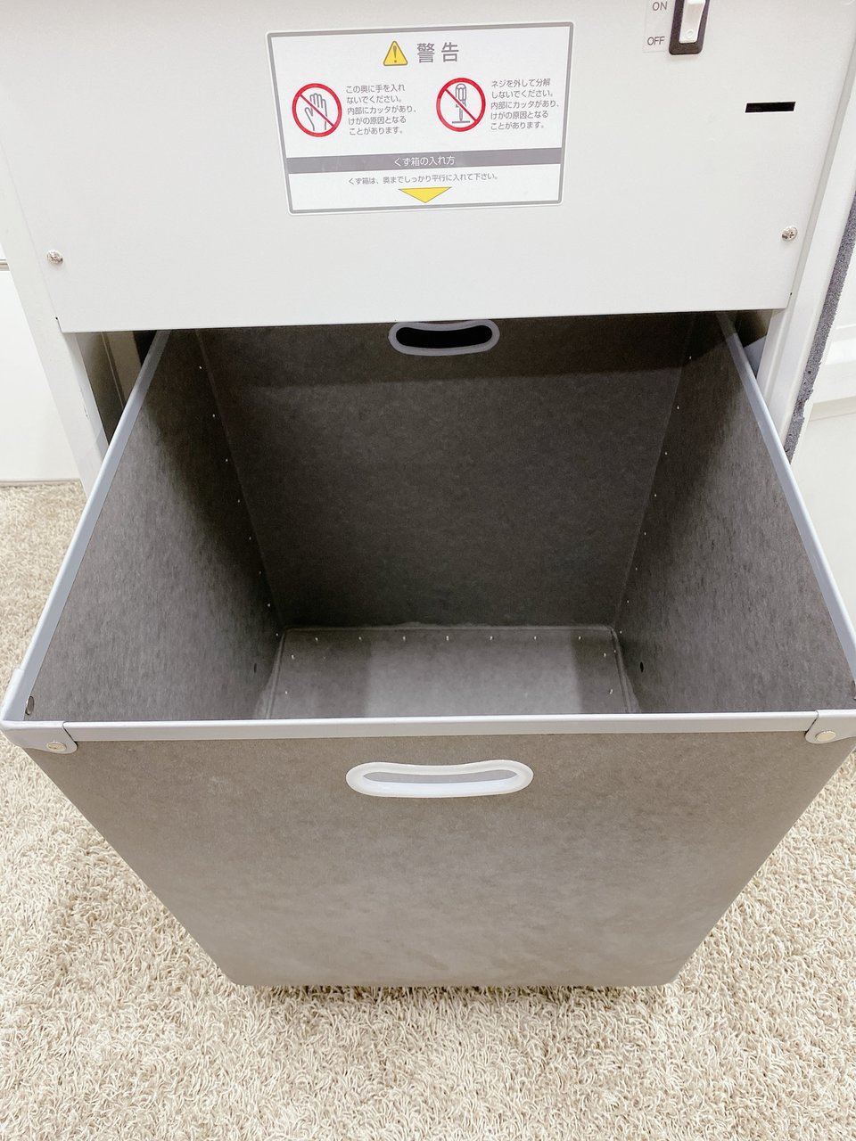 2つのカッターで縦横に切ることでクズがフラットになり、クズ箱に効率よく収容してくれます!
