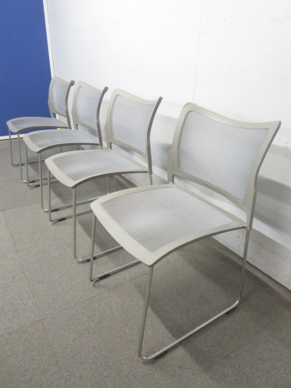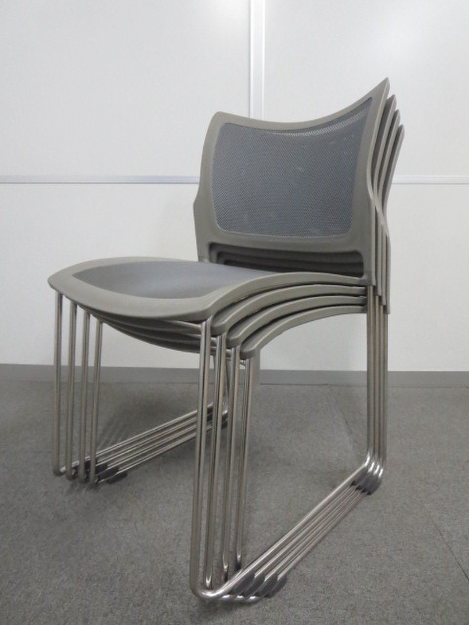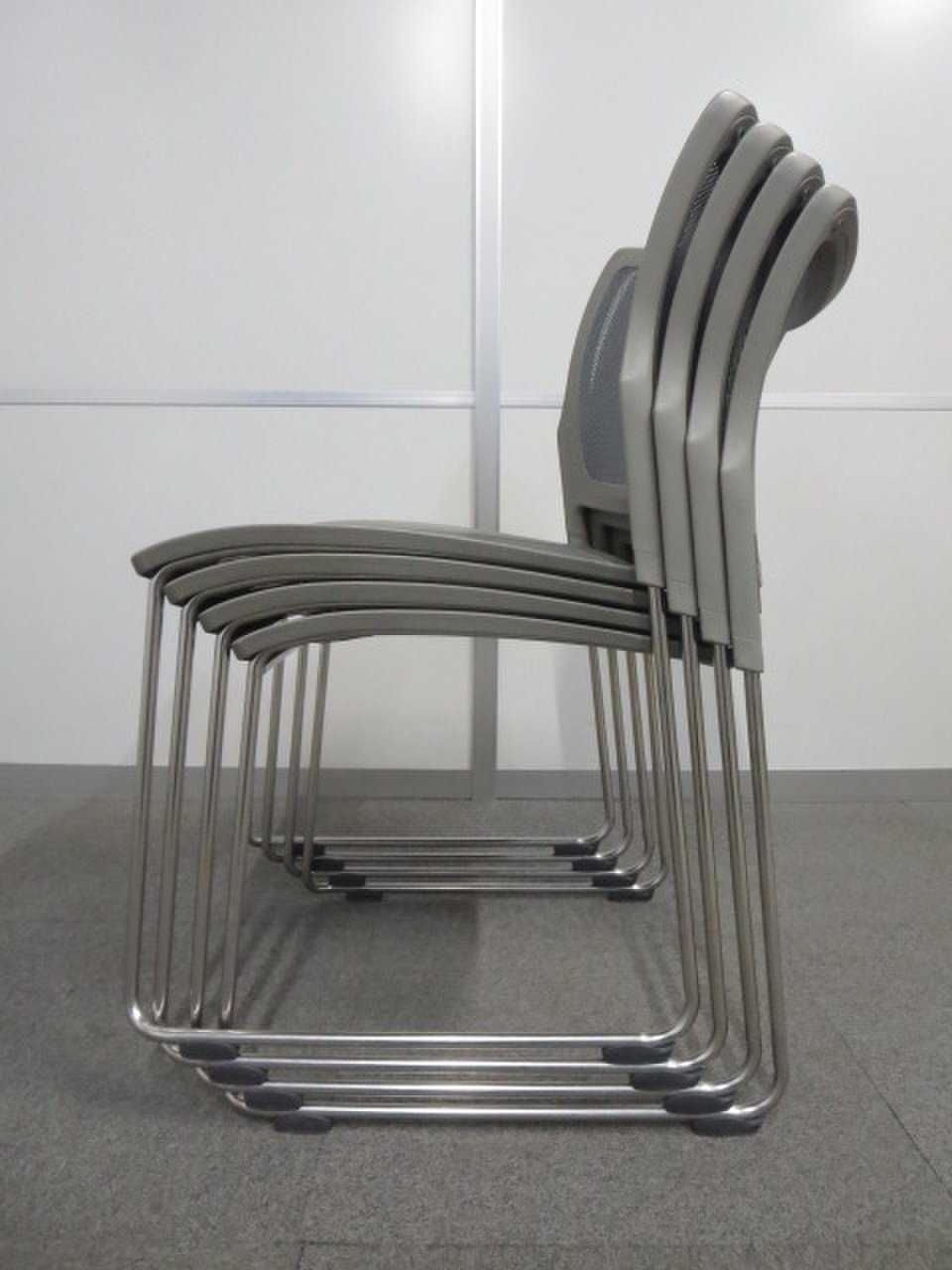 【メッシュが心地よさをキープ!】■オカムラ製 スタッキングチェア グレー- 川崎店