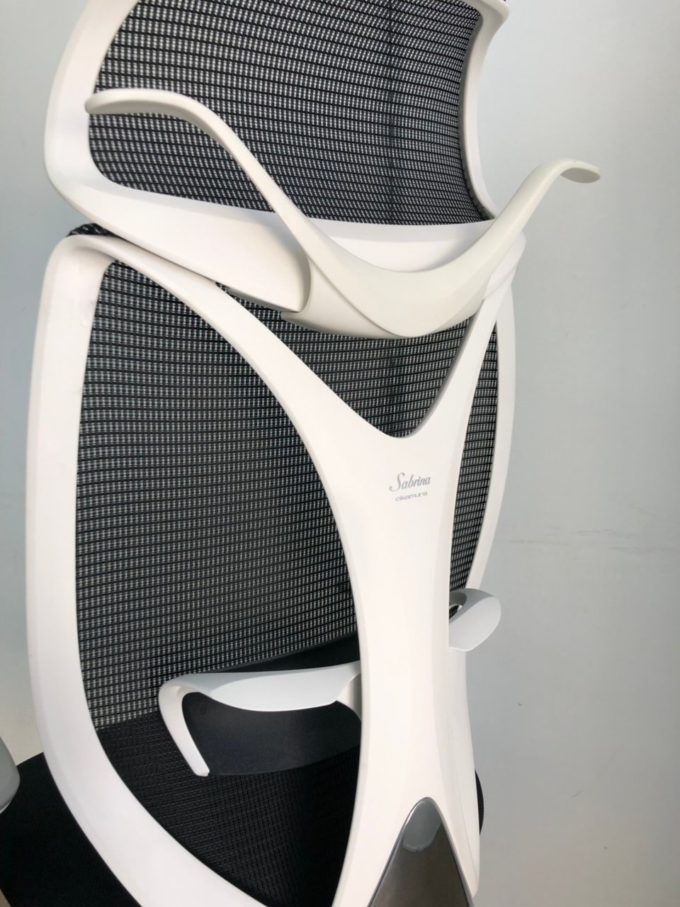【前傾チルト付・流れるような美しいフォルムの最高級メッシュチェア!】■オカムラ(okamura)製 サブリナ(Sabrina) 肘付き エクストラハイバックチェア 背面メッシュ ■可動肘・ヘッドレスト・ハンガー付き ■ブラック【オフィスにもご自宅用にも人気の一品!】