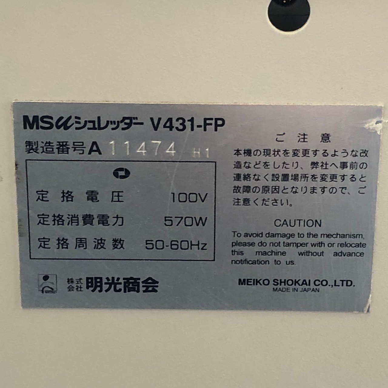 【中古】 MSVシリーズ MS-VS431FP 明光商会 シュレッダー 305307