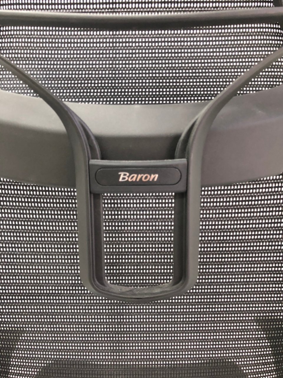発売当時、既に人気を博していたオカムラの高級チェア、コンテッサから手元で座高調整ができるスマートオペレーション機能を取り除くなどしてリーズナブルにしたのがバロンです。その際に少しだけコンパクト化されました。そのことが、日本人の体格、日本のオフィス、家庭環境に適し、国内で多くのシェアを獲得する要因の一つになったのではないかと思います。