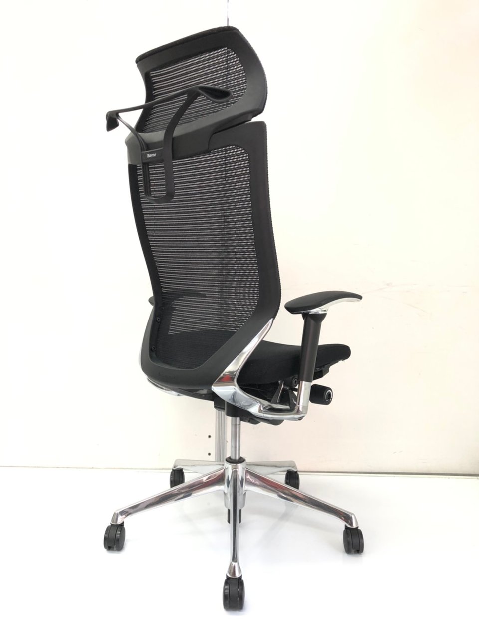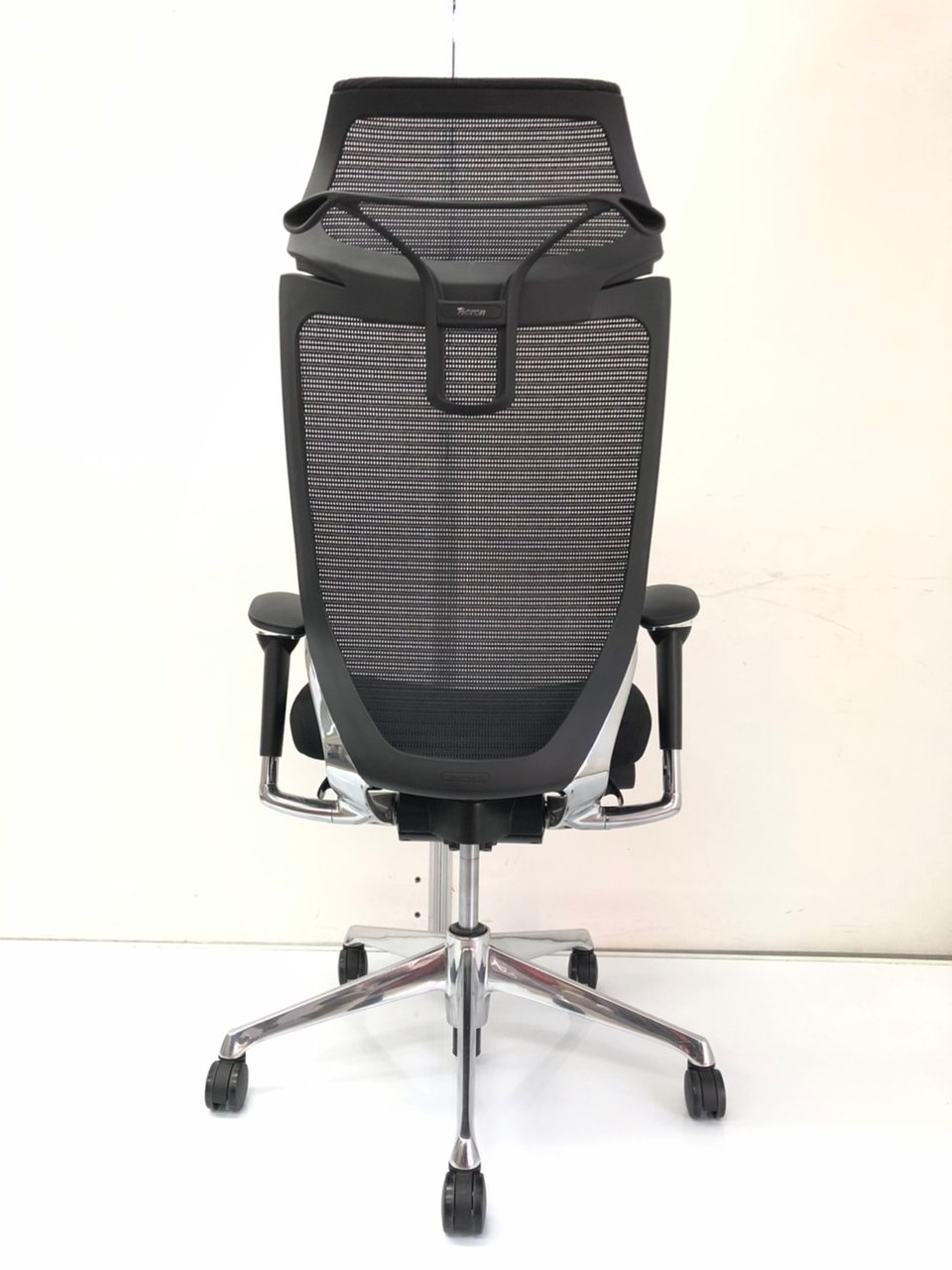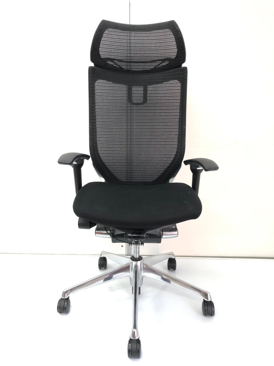 【オフィスの執務室、会議室におすすめ!】■オカムラ(okamura)製 バロン(Baron)チェア 肘付き ハイバック ■背・座面メッシュ ■可動肘 ■ヘッドレスト付き ■ブラック【硬めの座面が大人気!国産メッシュチェアの代表格!】