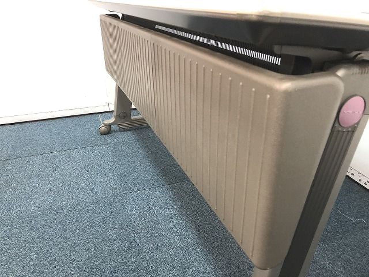 - 一部不具合あり天板歪み、アジャスター無し、キャスター使用不可ようなそのテーブルの本来の効用を果たすための機能以外の一部が使用不可な状態。(例、キャスターロッ ク機能使用不可、棚板無し等がある。)