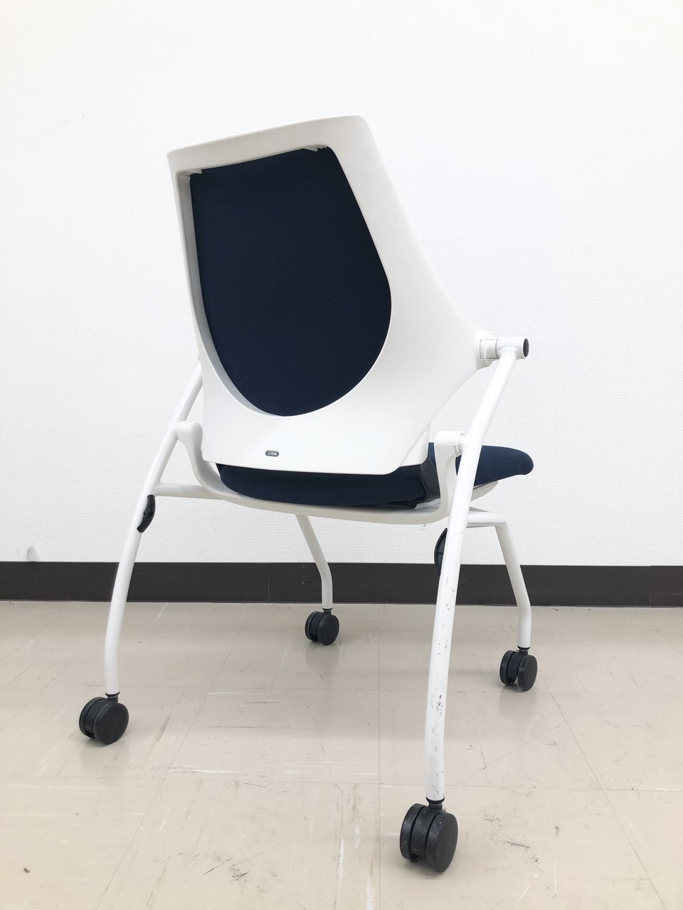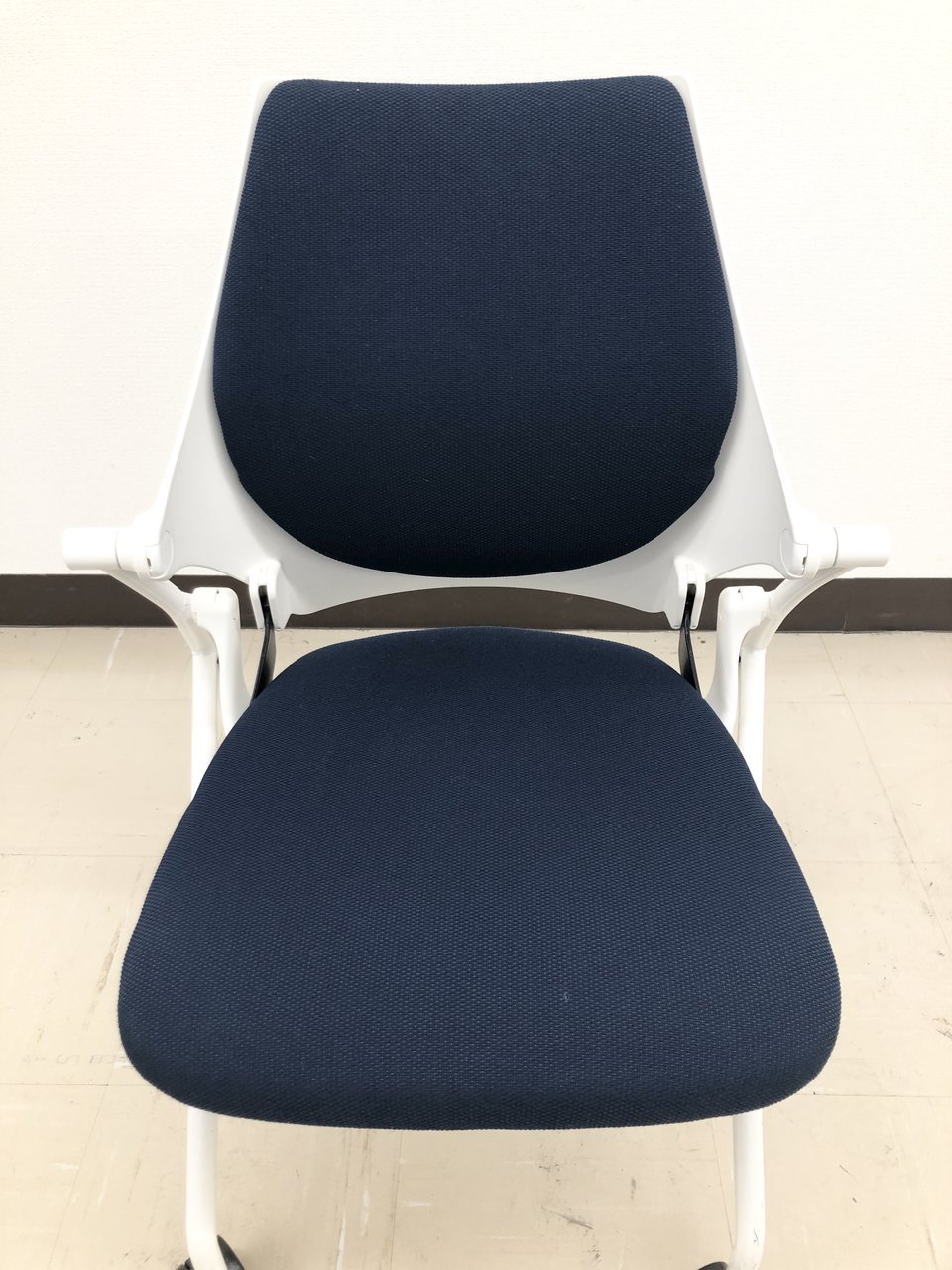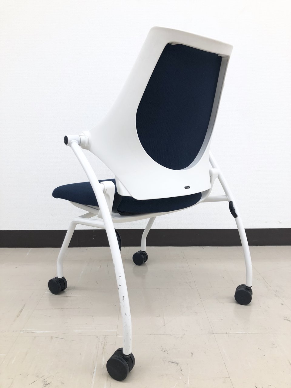 【疲れにくく快適な座り心地を追求!】■イトーキ(ITOKI)製 イプサシリーズ ネスティングチェア ミーティングチェア キャスター付 ■ネイビーブルー×ホワイトシェル 【平行スタックで省スペース!】