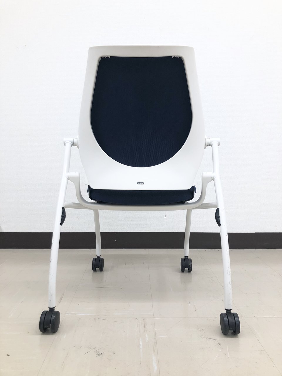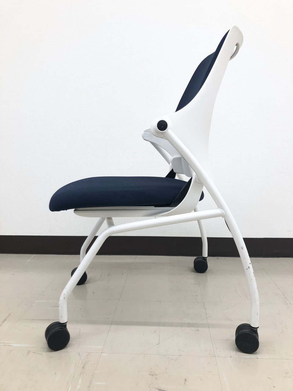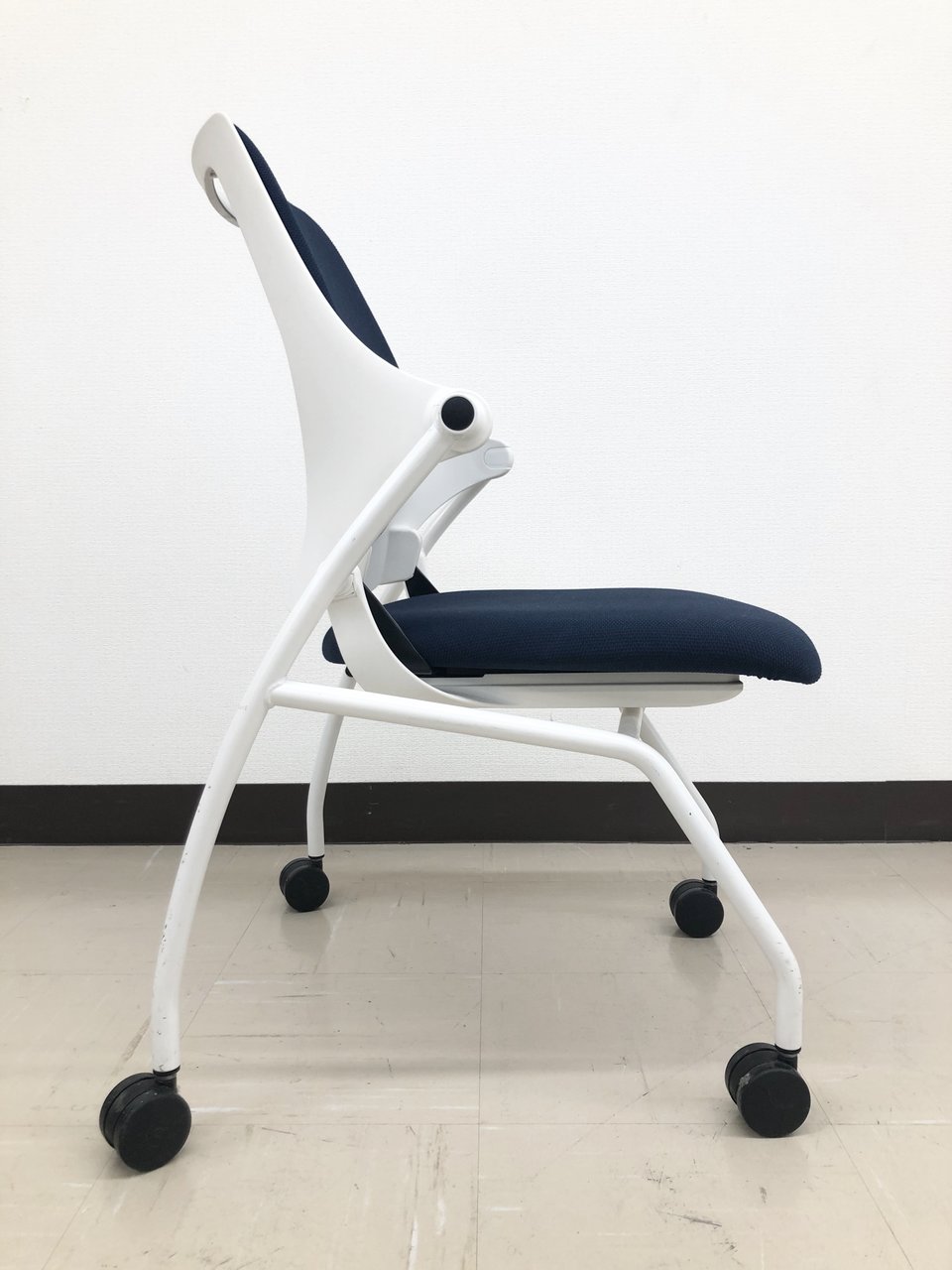 【疲れにくく快適な座り心地を追求!】■イトーキ(ITOKI)製 イプサシリーズ ネスティングチェア ミーティングチェア キャスター付 ■ネイビーブルー×ホワイトシェル 【平行スタックで省スペース!】
