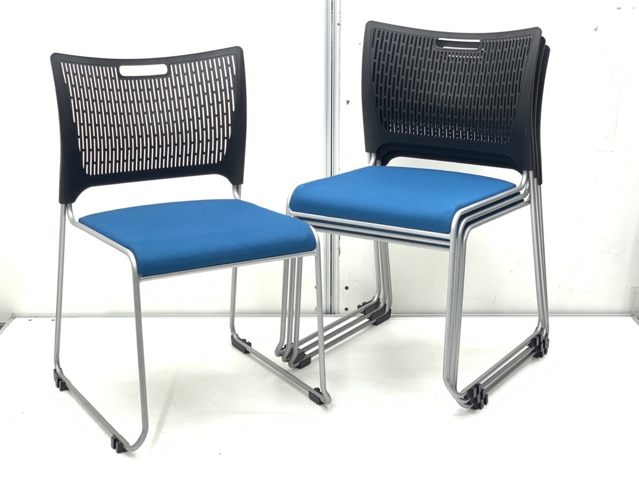 【4脚セット10%オフ】【重ね置きできる】オカムラ(okamura)/レーテ(RETE)/ターコイズブルー色 〇- 埼玉本店