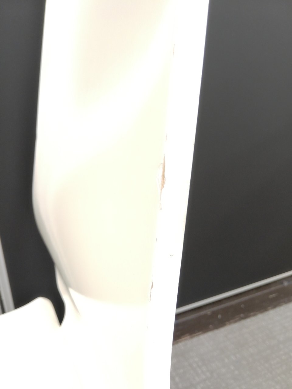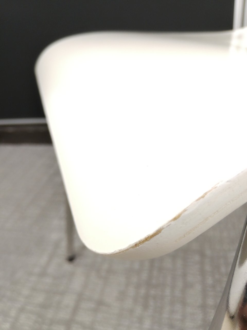 - かなり強い濃い黄ばみ・変色が商品全体にある。(例、座面・背もたれ、脚部等にある。)