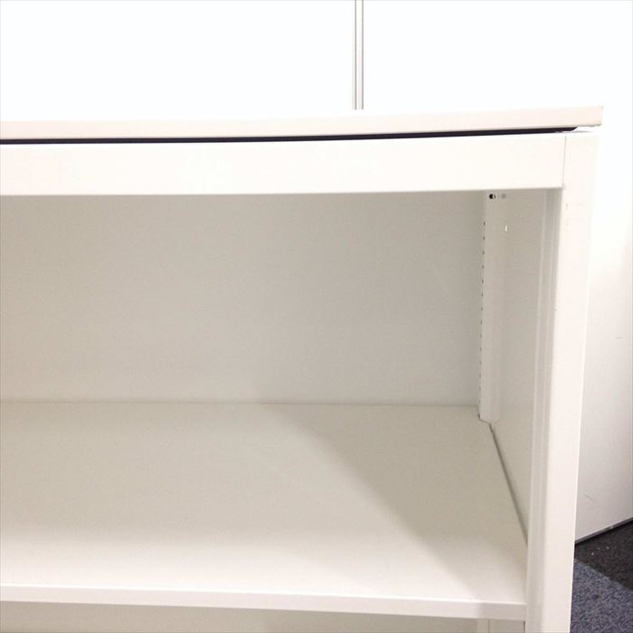 【オフィスの書類をスッキリ整理! 扉の無いタイプなので資料探しがラクラク!】■オカムラ(okamura)製 レクトライン(Rectline)シリーズ オープン書庫 ローキャビネット ■色:ホワイト ※扉外し商品のため外し跡がございます。