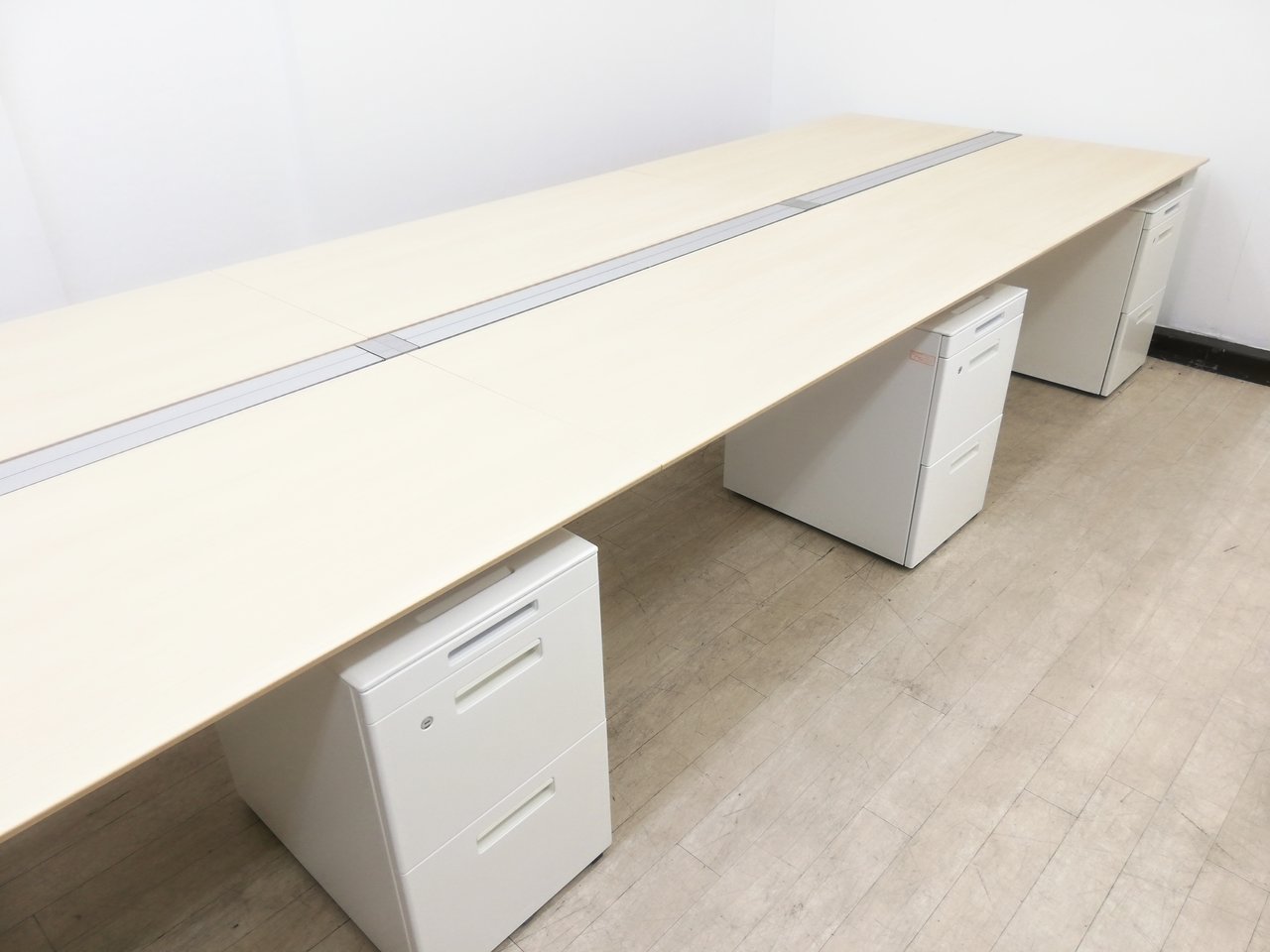【関西倉庫入荷】■オカムラ フリーウェイ 幅3600mm×奥行1400mm ■天板ネオウッドライト×脚ホワイト【6名様推奨サイズ! 足元すっきりナチュラル天板のフリーアドレスデスク!】