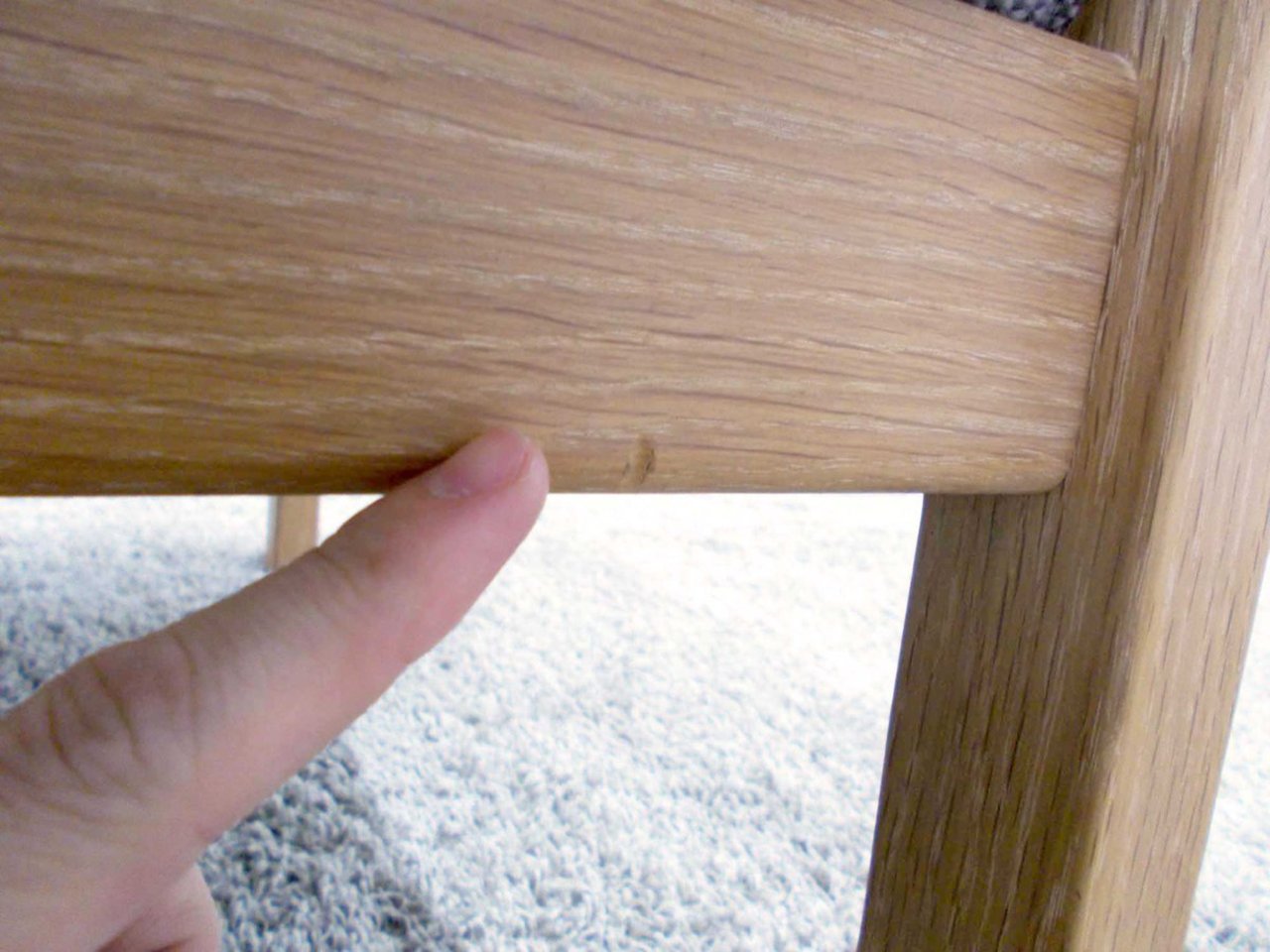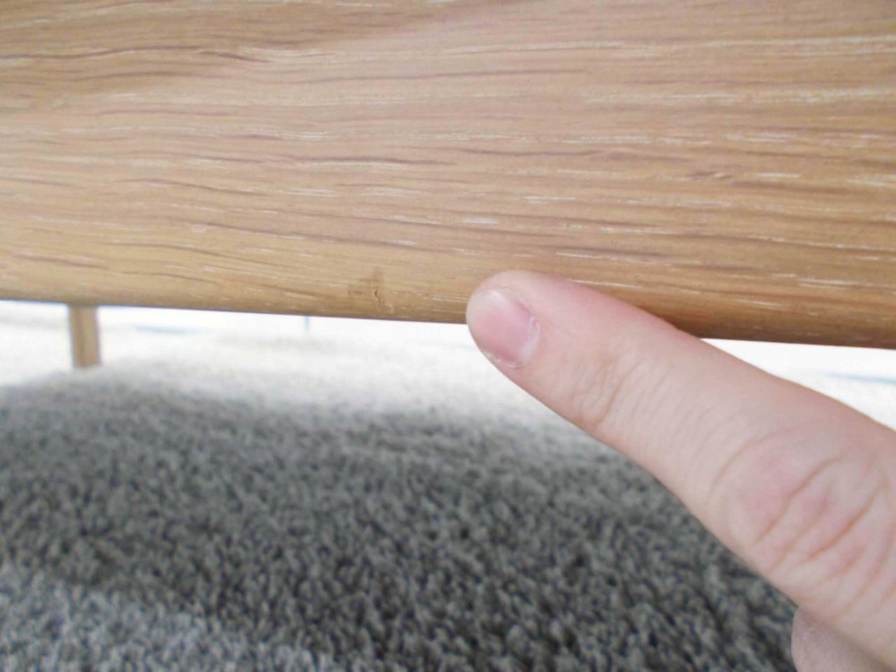 - あり黄ばみ・変色が広い範囲にうっすらある、または濃い黄ばみ・変色が一部ある。(例:三人用ソファ、二人用ソファ、一人用ソファの場合、背もたれ、肘かけ、座面等、 センターテーブルの場合、天板、脚にある。)