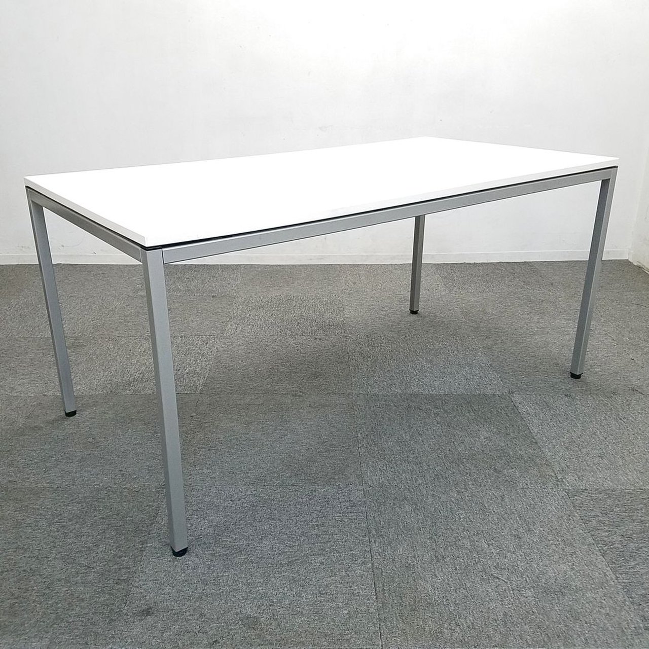【2台限定】【会議や打ち合わせにオススメの人気ミーティングテーブル!シンプルなデザインで様々な空間にフィットする定番商品!】■オカムラ(okamura)製 トレッセシリーズ ミーティングテーブル 会議用 W1500×D800㎜ ■ホワイト/4本脚:シルバー