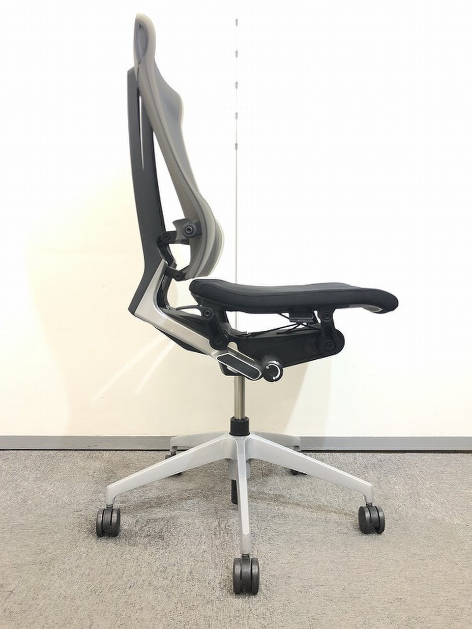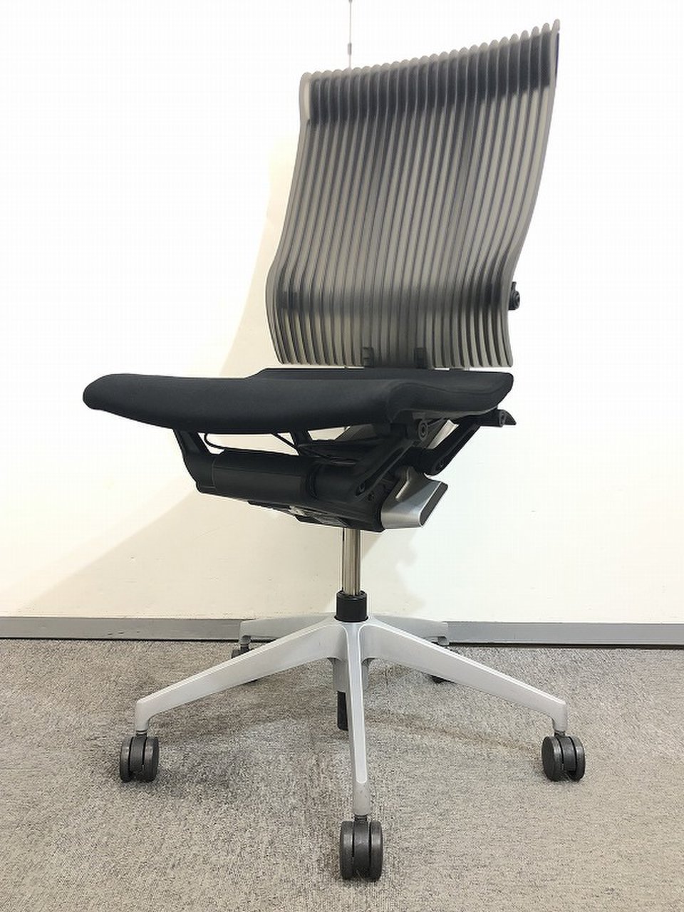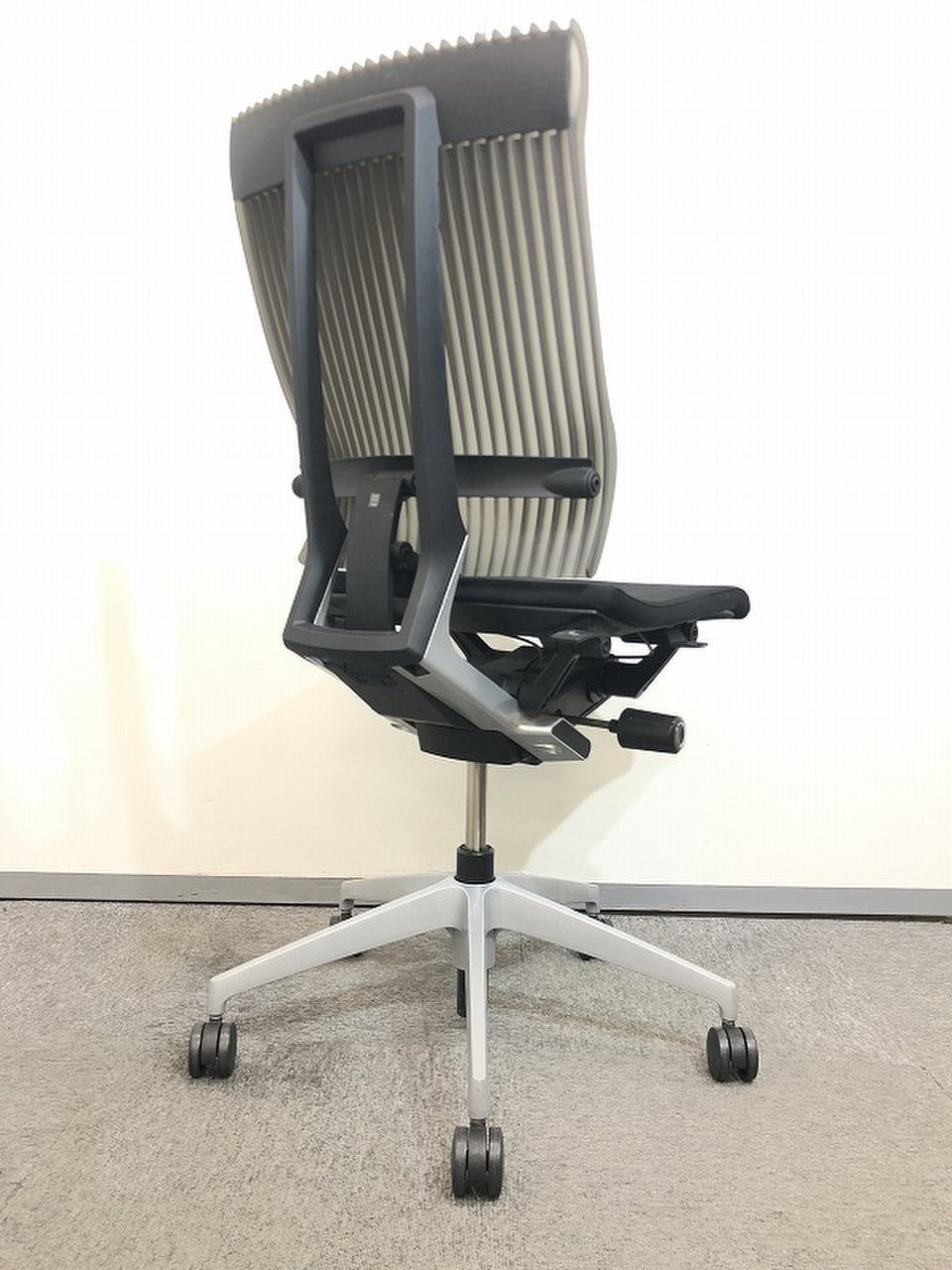 一番の特長は、着座時にチェアがピタっと体にフィットしてくれることです。 人がチェアの座り心地を調節するのではなく、チェアが人に合わせて動くのです!着座時に座面が沈み込みながら後方へスライドし、それと同時に背もたれの腰部分が前にせり出し、「ずっと座っていたくなる」と言われるほどの座り心地に調節してくれます。それを実現しているのが、A.L.S(アクティブ・ランバー・サポート)機構とP.S.S(パッシブ・スライド・シート)機構です。 さらに、背もたれにかかる体圧を徹底的に分析して作られた絶妙なカーブが、常に腰をサポートしつつ背骨のラインに沿ってくれます。