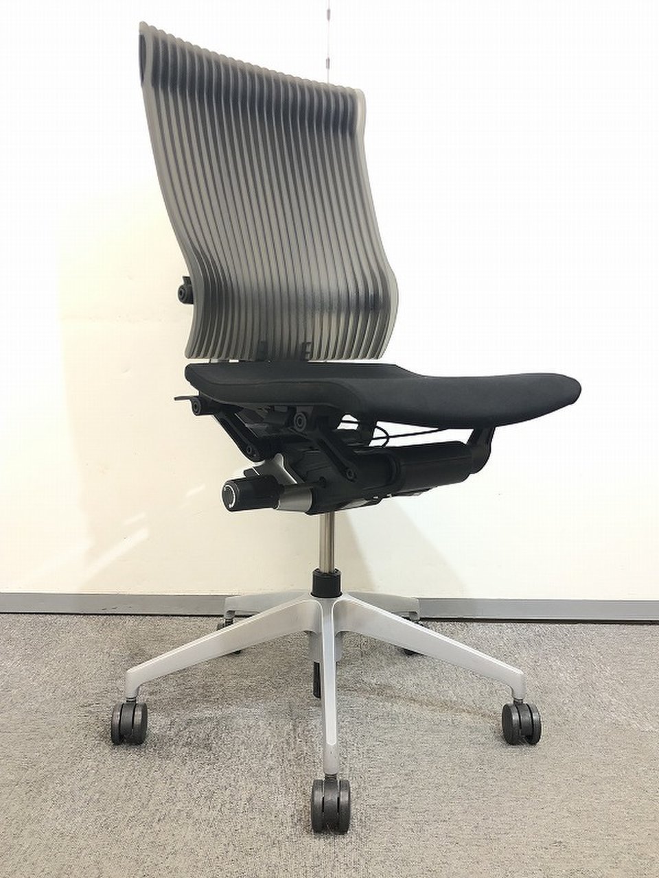見た目は少し硬そうに見えるエラストマー素材ですが、座ってみると程よいしなり具合のやわらかな座り心地で、背中が痛くなるようなことはまるでありません。面ではなく線で支えることで、背面の通気性の良さは抜群です。