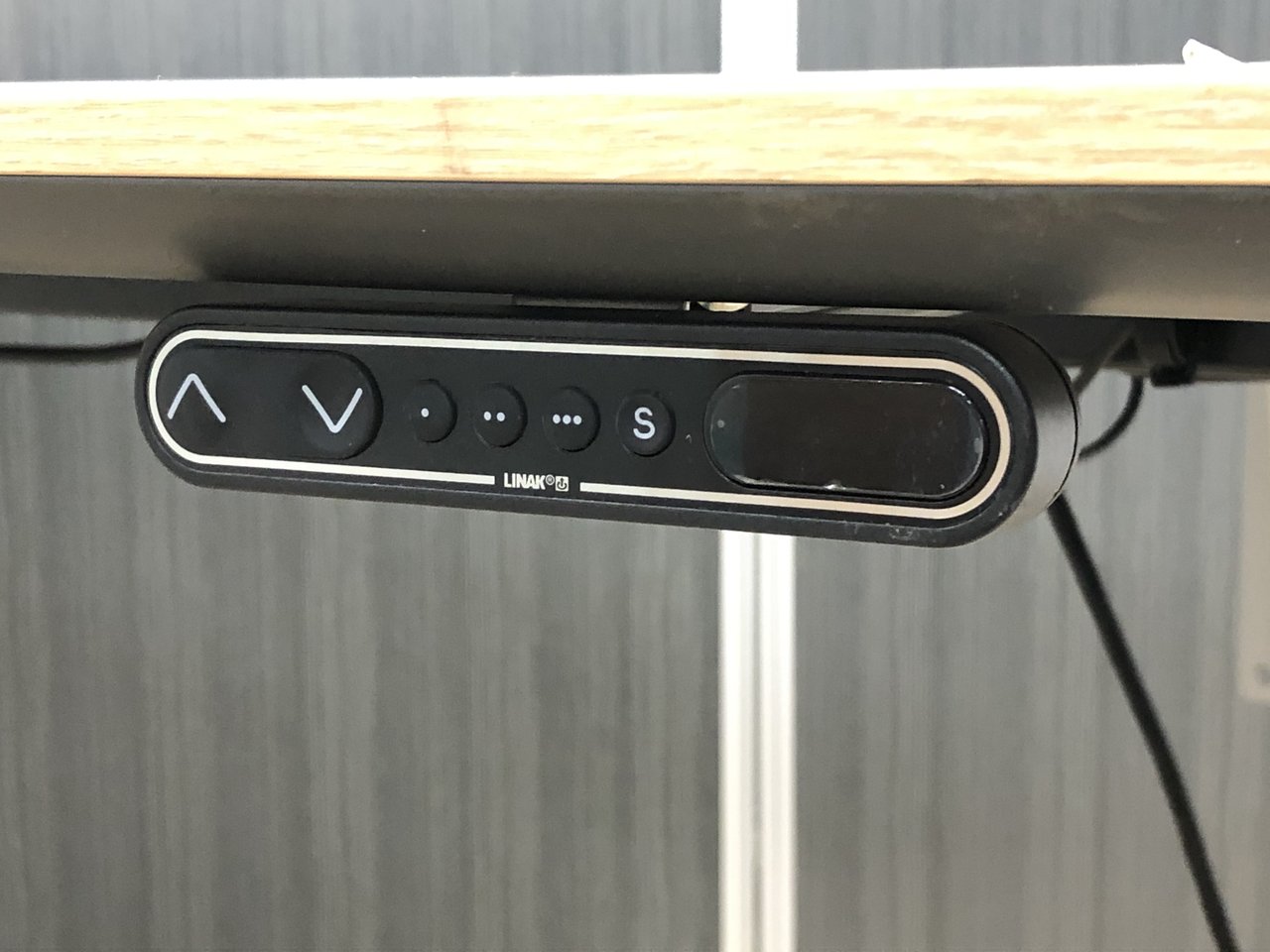 調節は、デスク前面のインジゲーター付き昇降スイッチで行います。