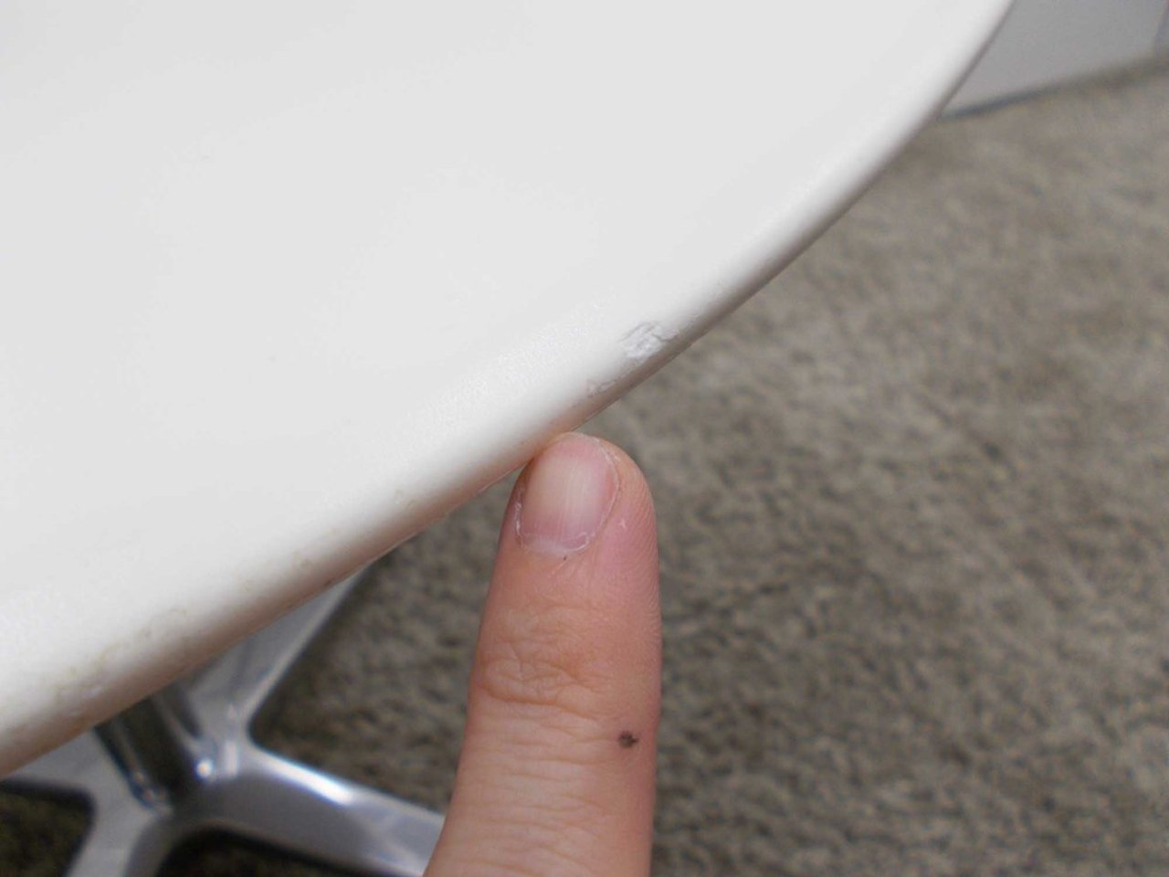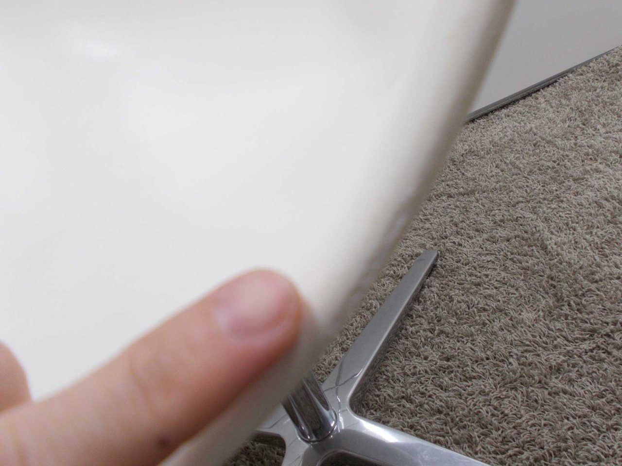 - かなり強い濃い黄ばみ・変色が商品全体にある。(例、座面・背もたれ、脚部等にある。)