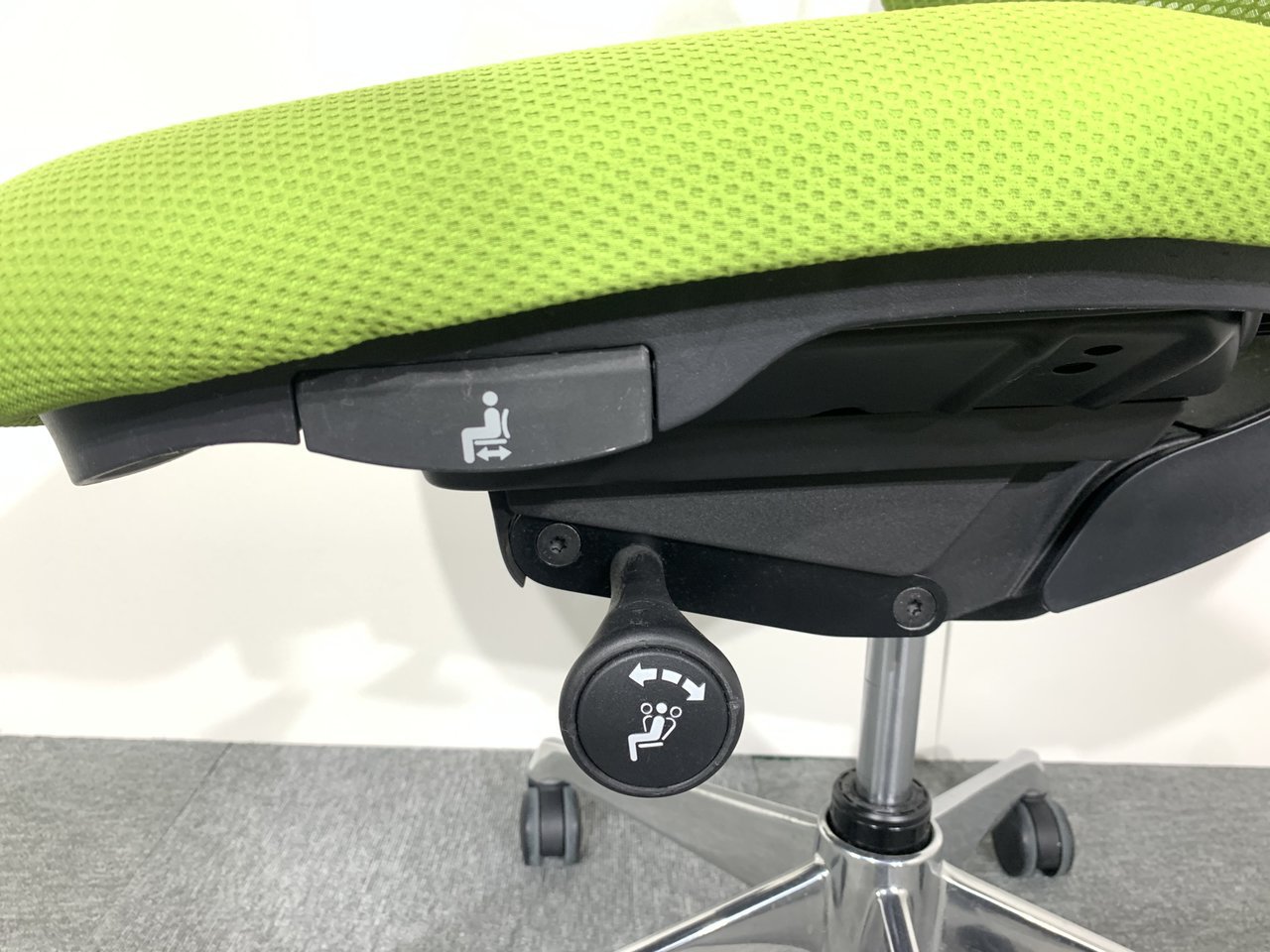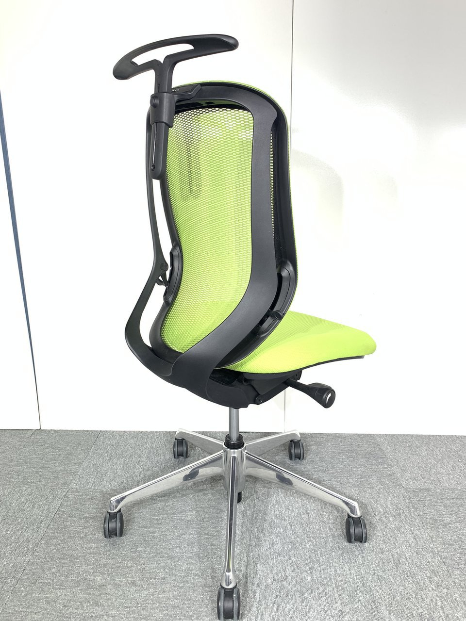 【前傾チルト機能付き】オカムラ製品で最も人気を集める高機能メッシュチェア! ■オカムラ/シルフィーチェア(Sylphy)/ライムグリーン 肘付き ハイバック 背面メッシュ 可動肘