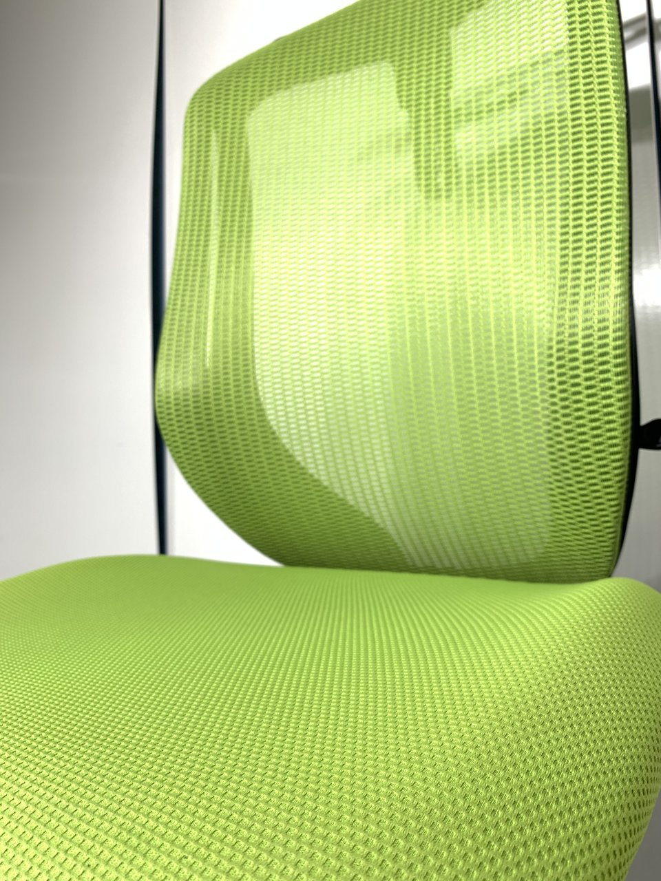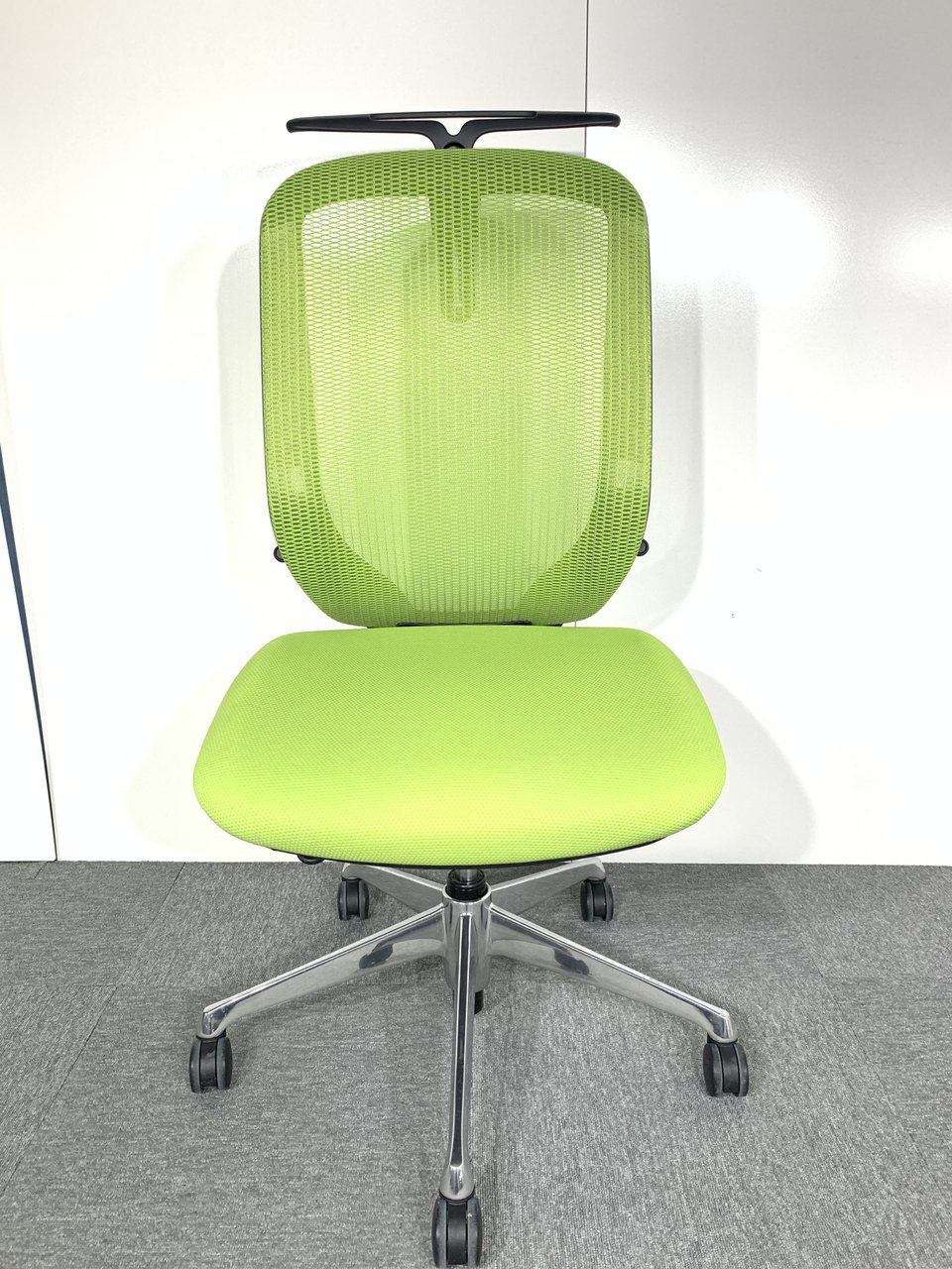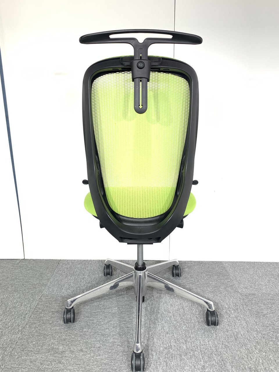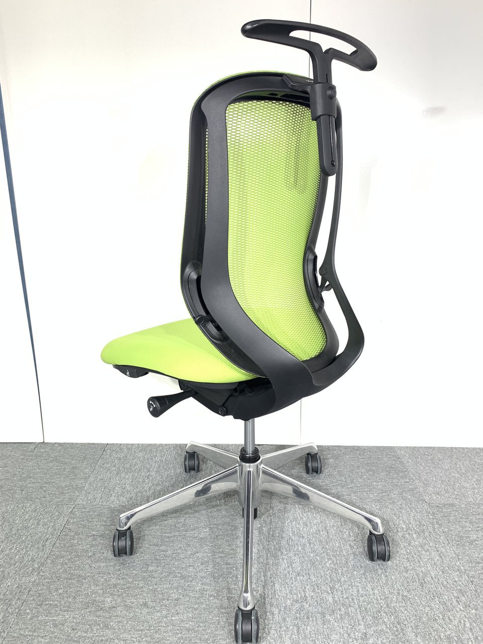 オカムラ製 シルフィ ライムグリーン ブラックフレーム 背面メッシュ ハイバック 樹脂脚 前傾チルト機能付き! オカムラ製品で最も人気を集める高機能メッシュチェア! 肘無しハイバックチェア!!
