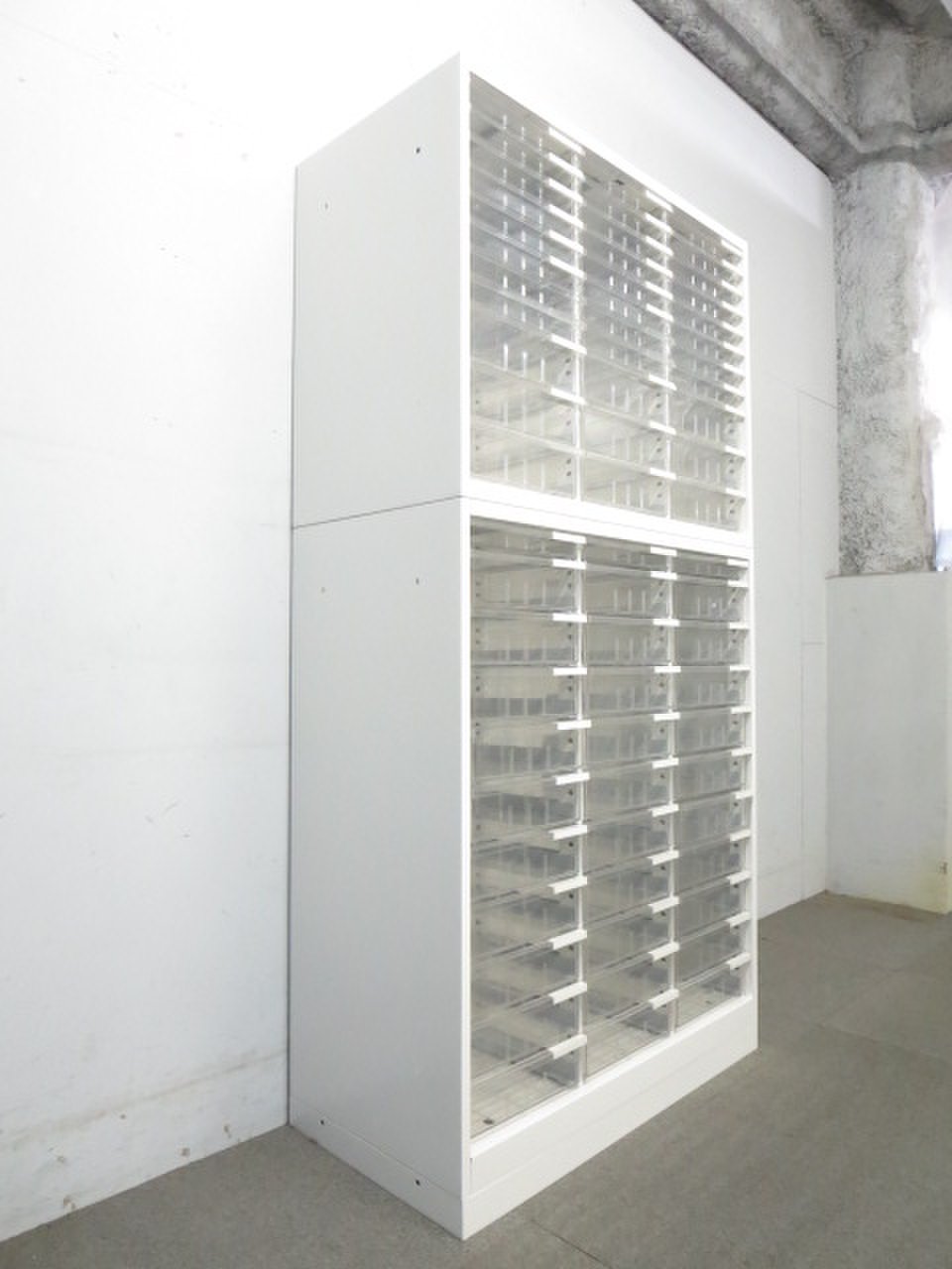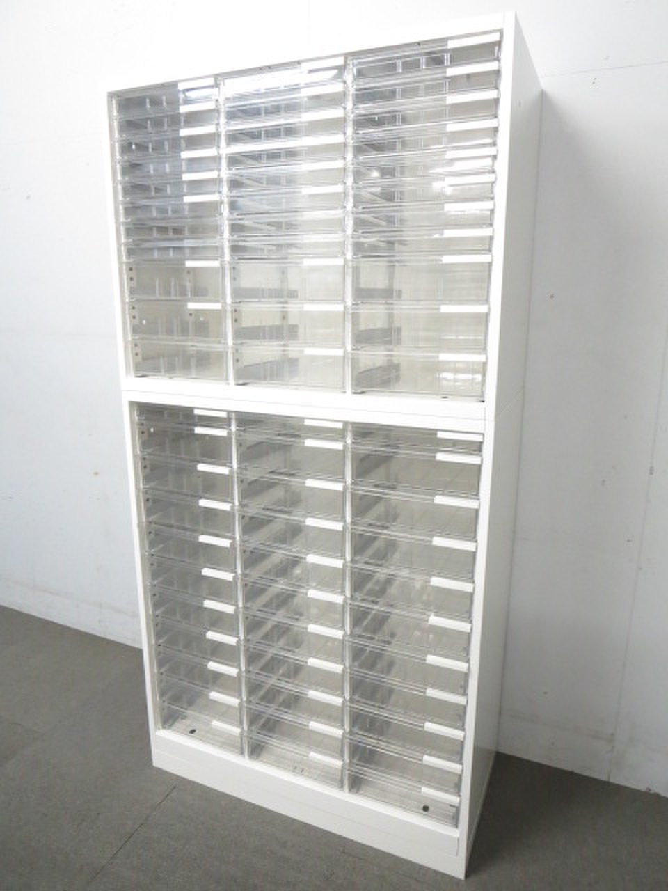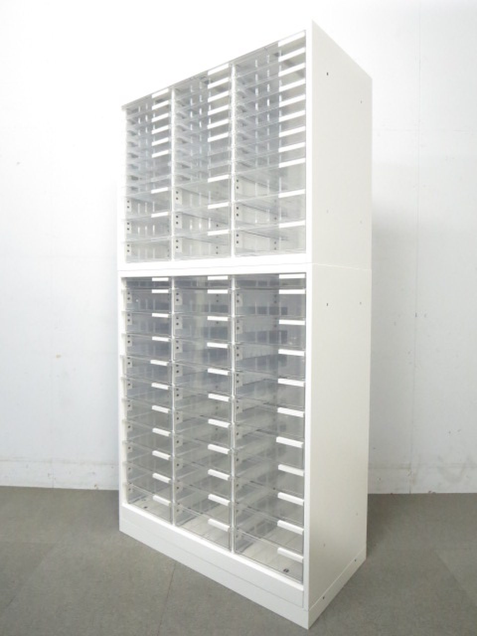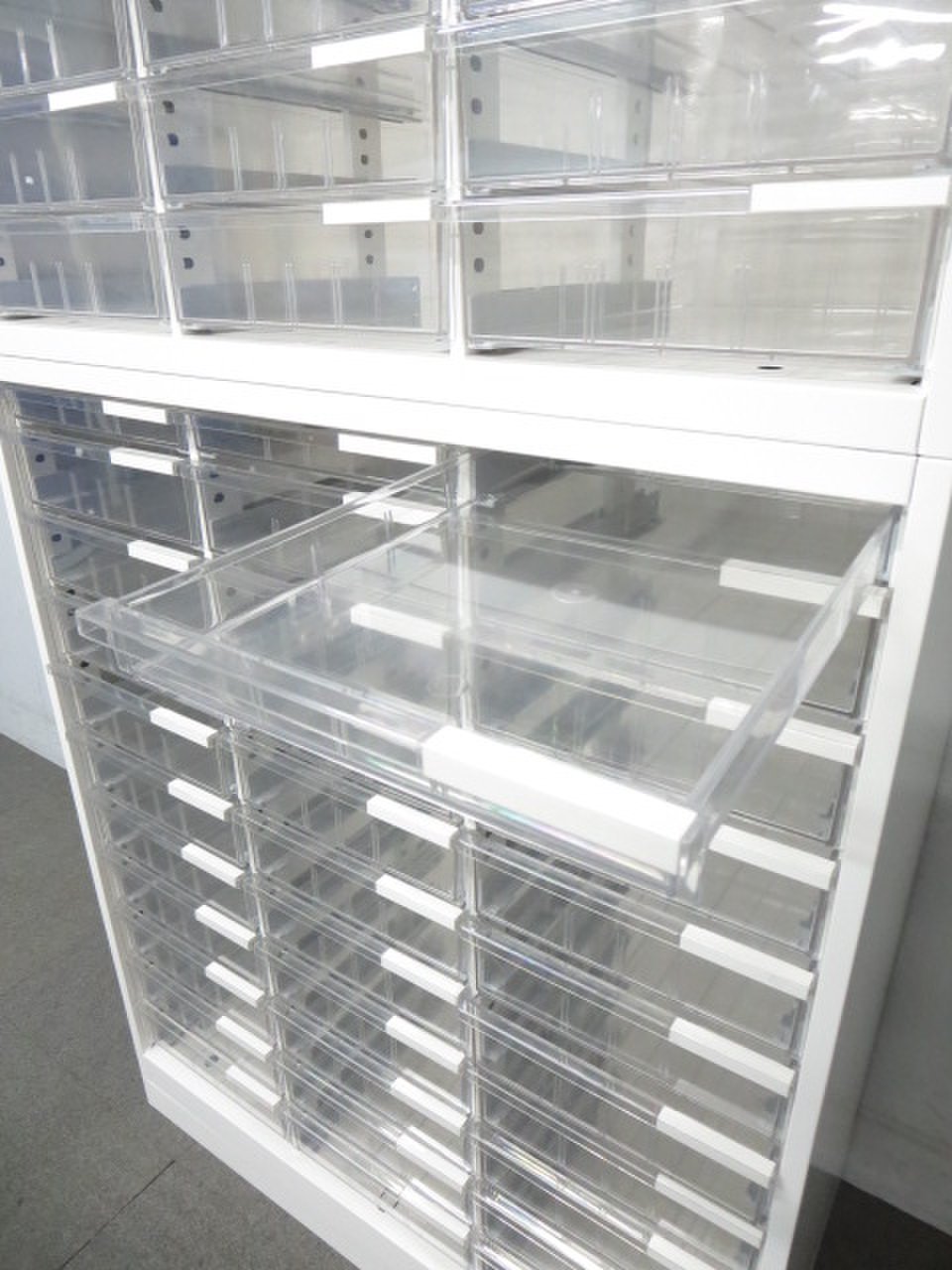 【たっぷり小分け収納!】■イトーキ製 上下クリスタルトレイキャビネット ホワイト- 川崎店
