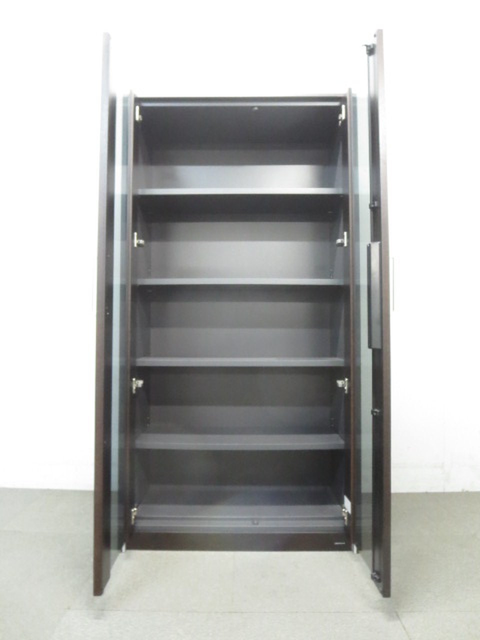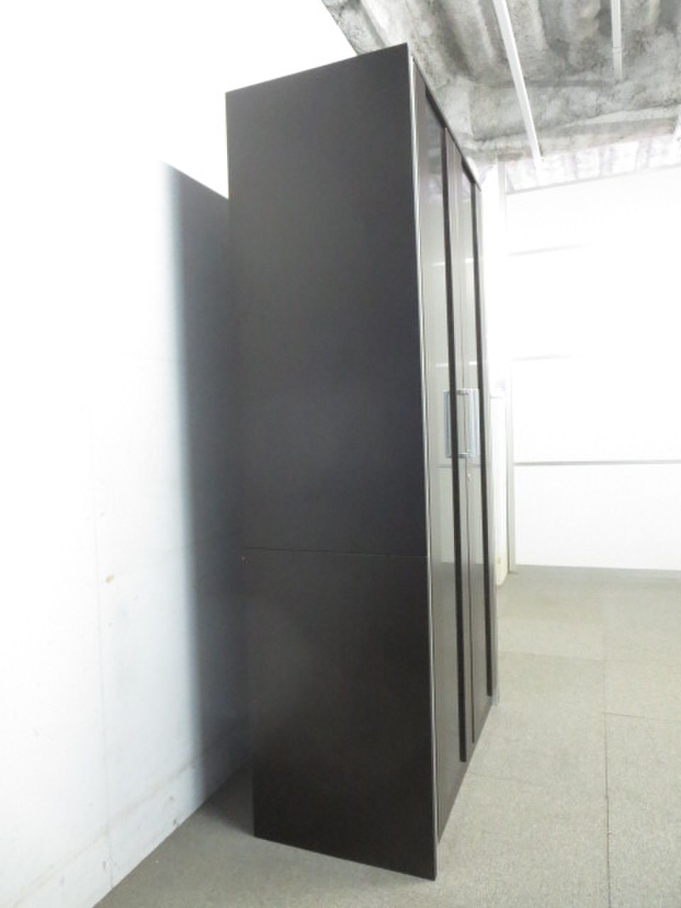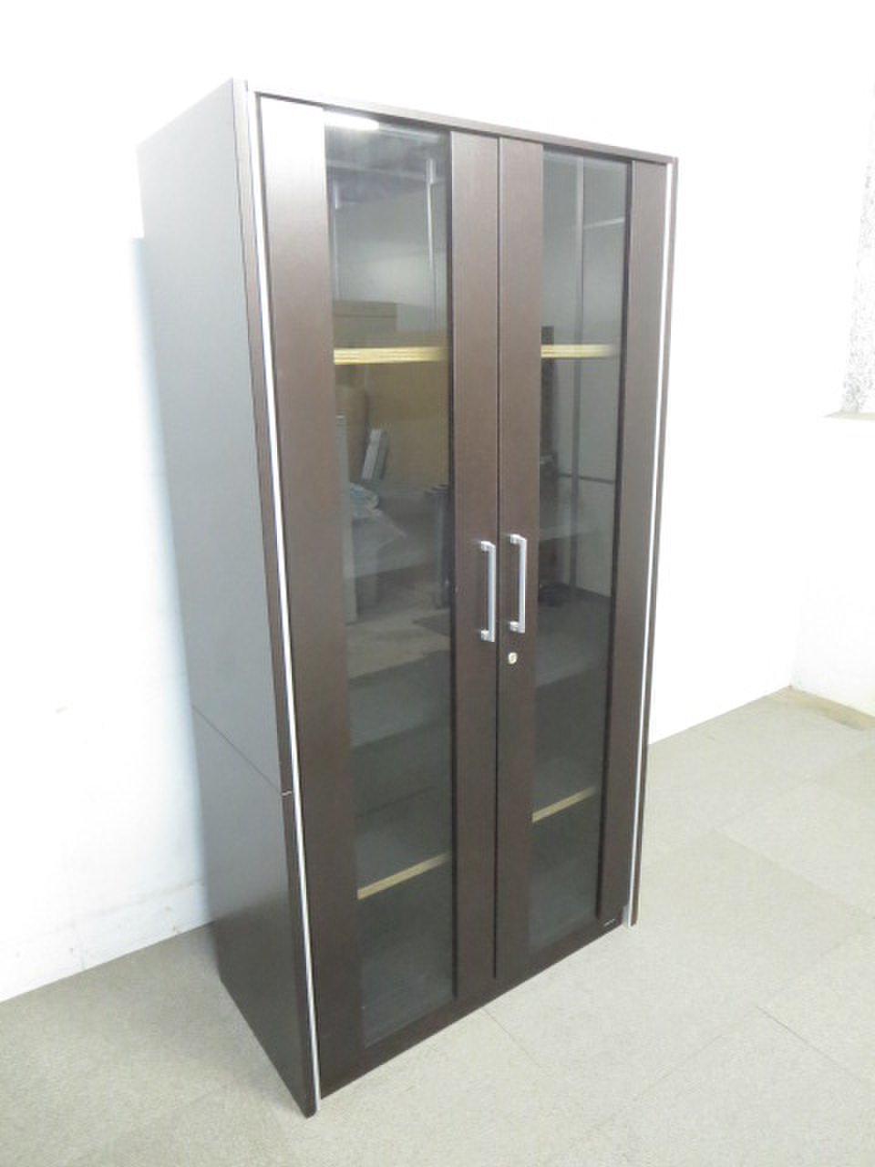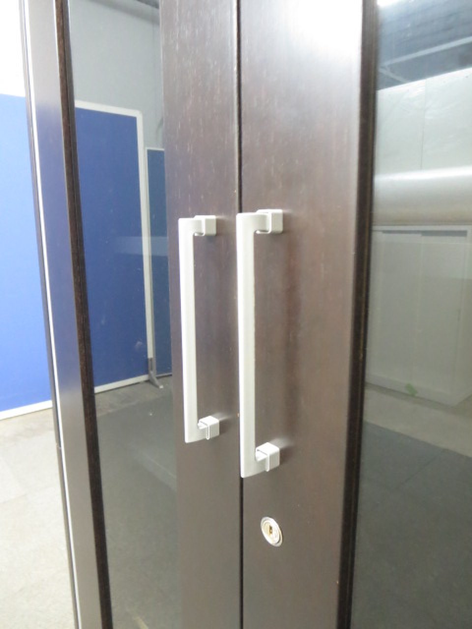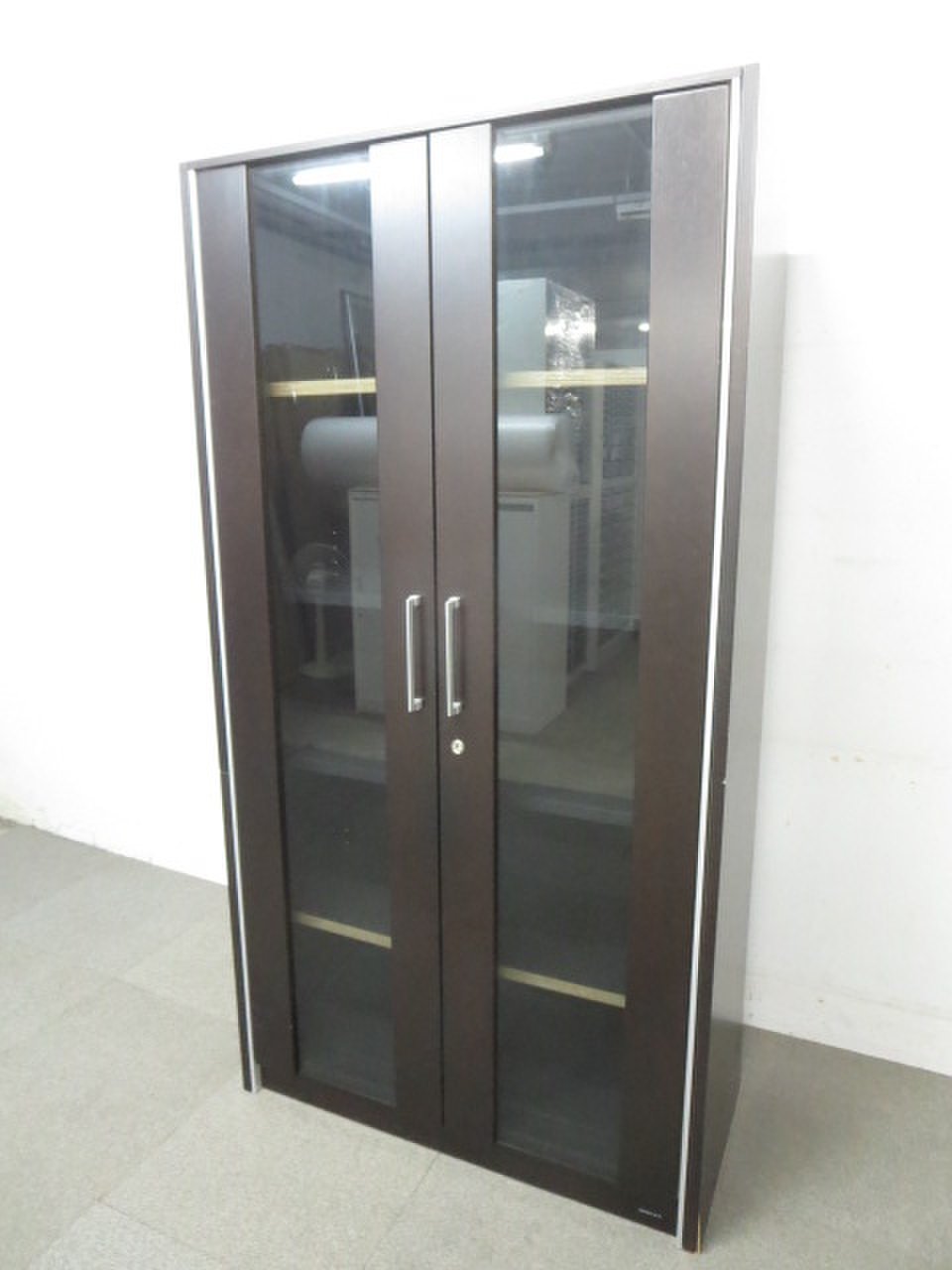 【役員室にオススメ!】■オカムラ製 木製ガラス書棚 ダークブラウン エンドパネル付【エグゼクティブ家具】- 川崎店